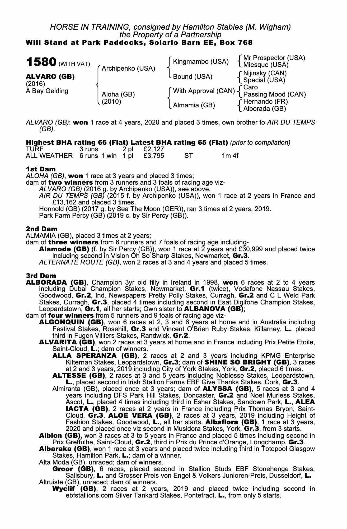 February Sale 2020 lot 383, Hamilton Stables (M. Wigham)=>Michael Wigham 13,000 gns