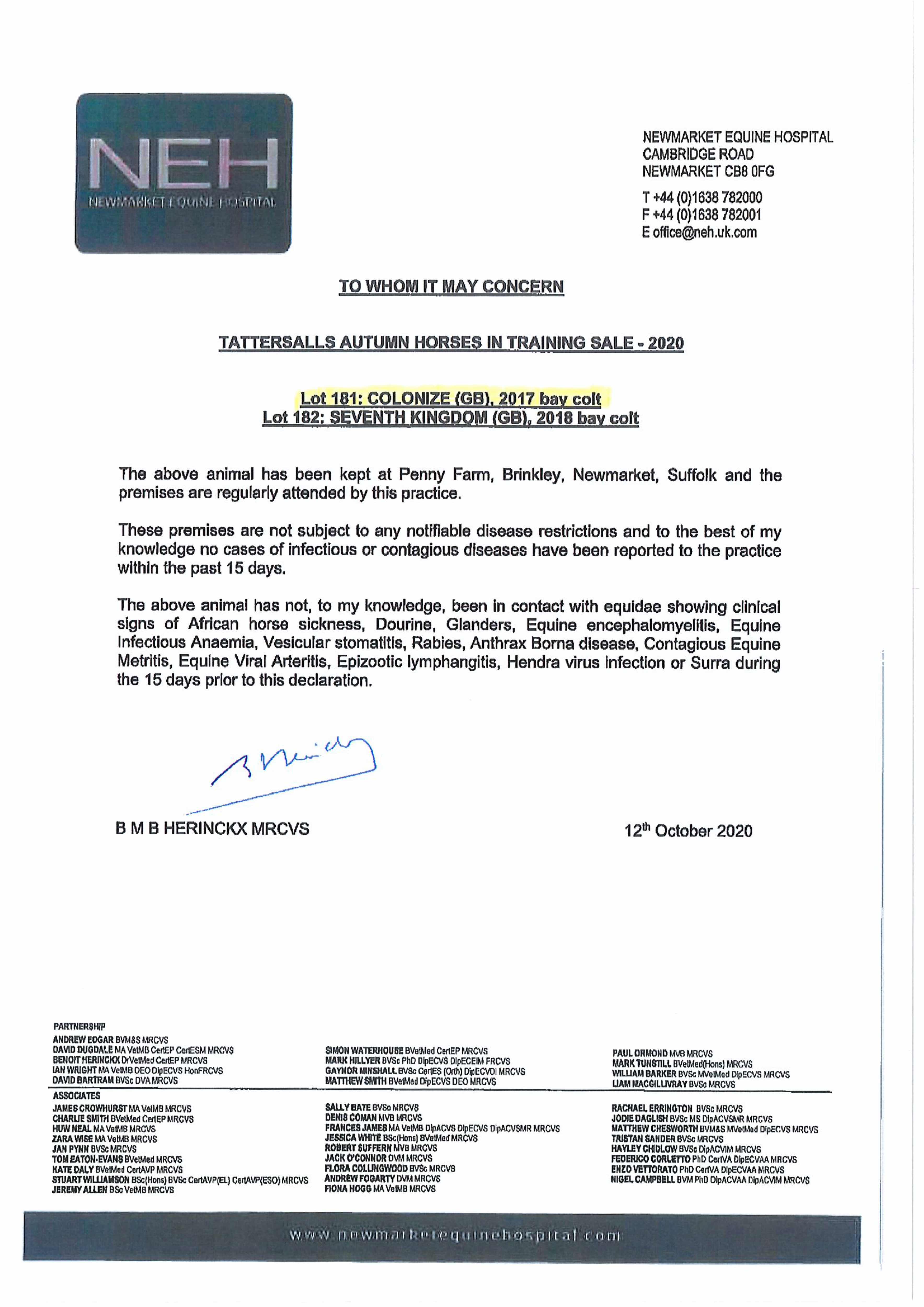 Autumn Horses In Training Sale 2020 lot 182 Seventh Kingdom (GB) (C. by Frankel (GB)), Voute Sales Ltd. (Agent)=>Vendor 150,000 gns