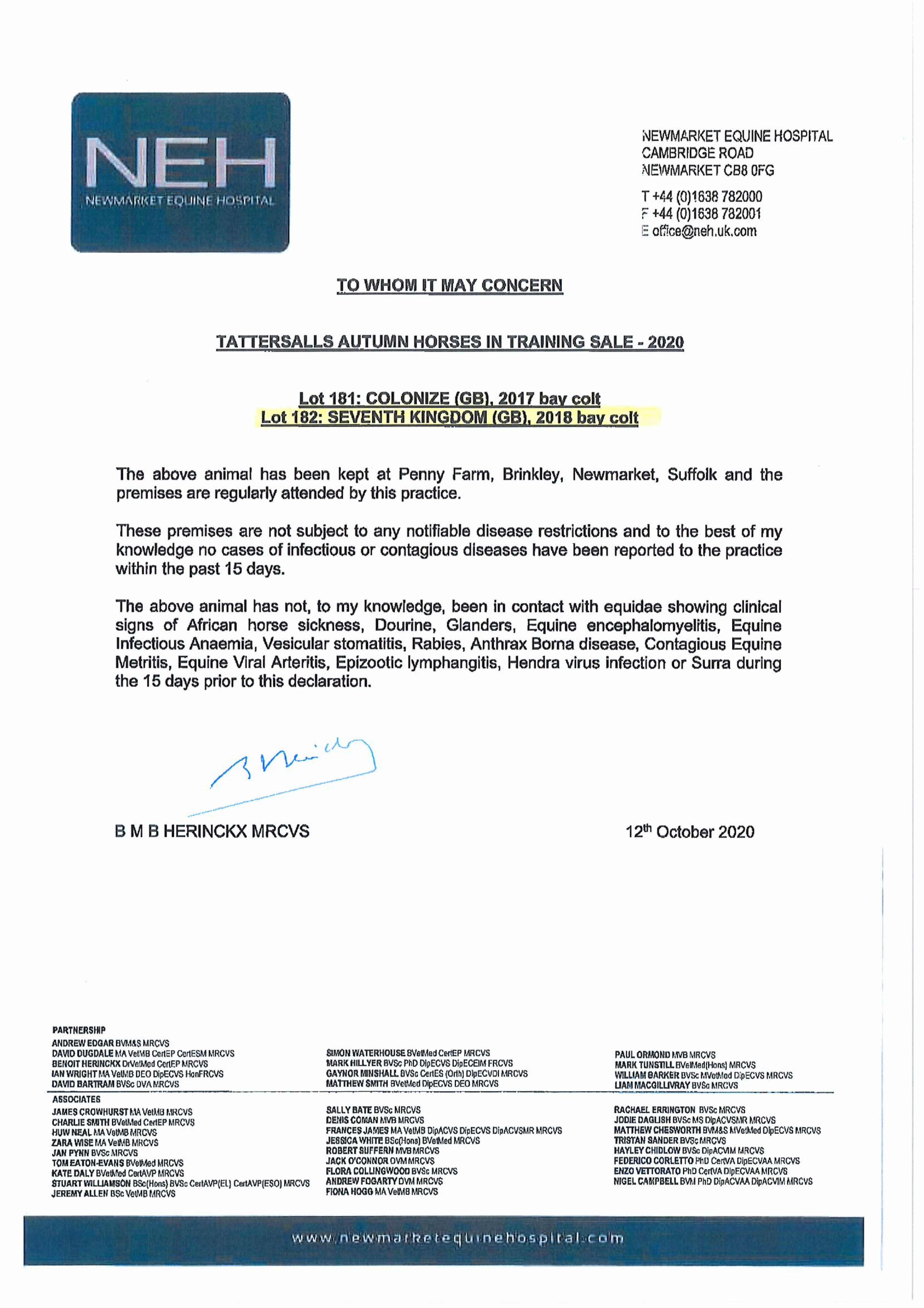 Autumn Horses In Training Sale 2020 lot 181 Colonize (GB) (C. by Empire Maker (USA)), Voute Sales Ltd. (Agent)=>Abdalrhman Fawaz Algraiban 8,500 gns