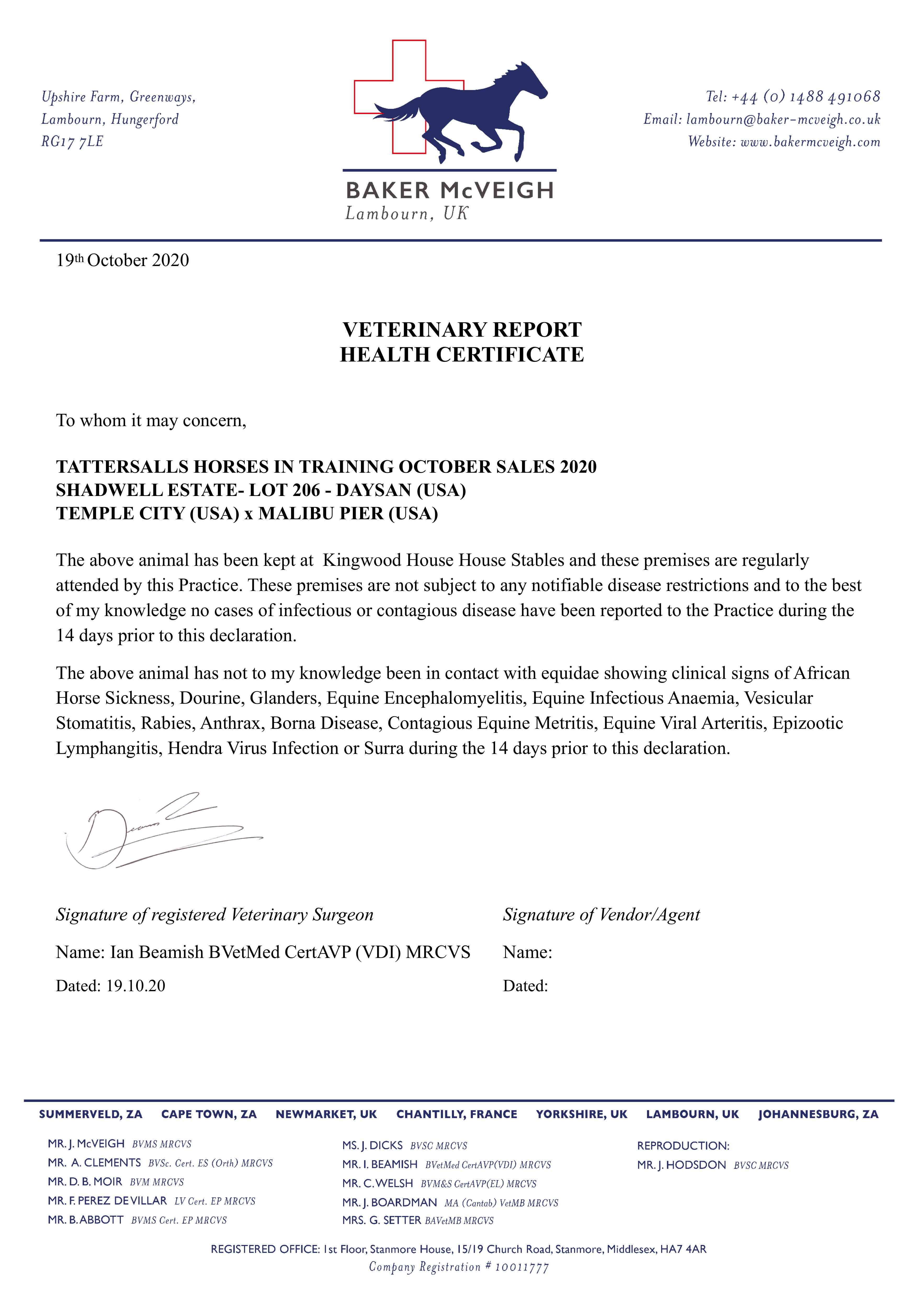 Health Certificate