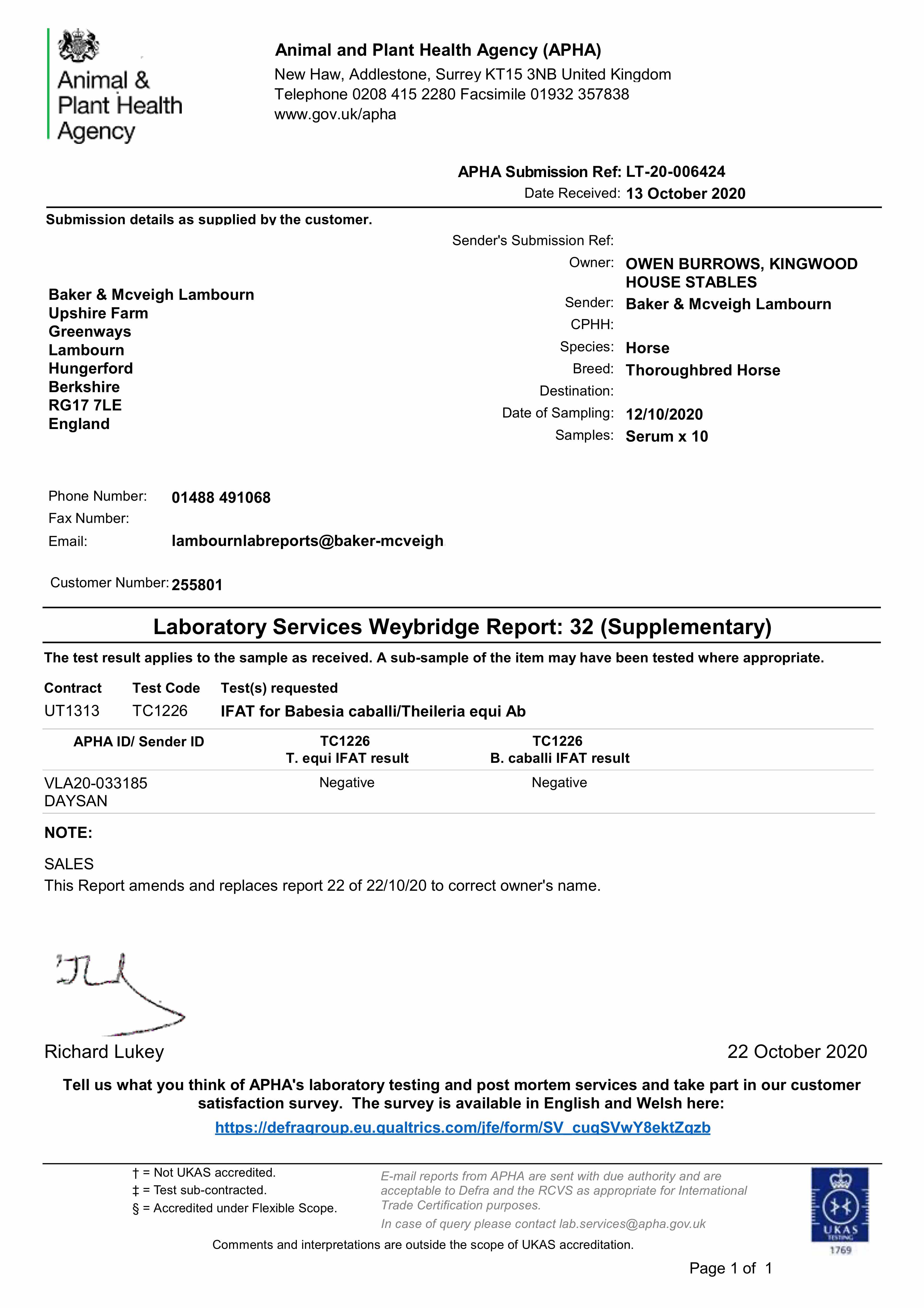 Piroplasmosis Certificate