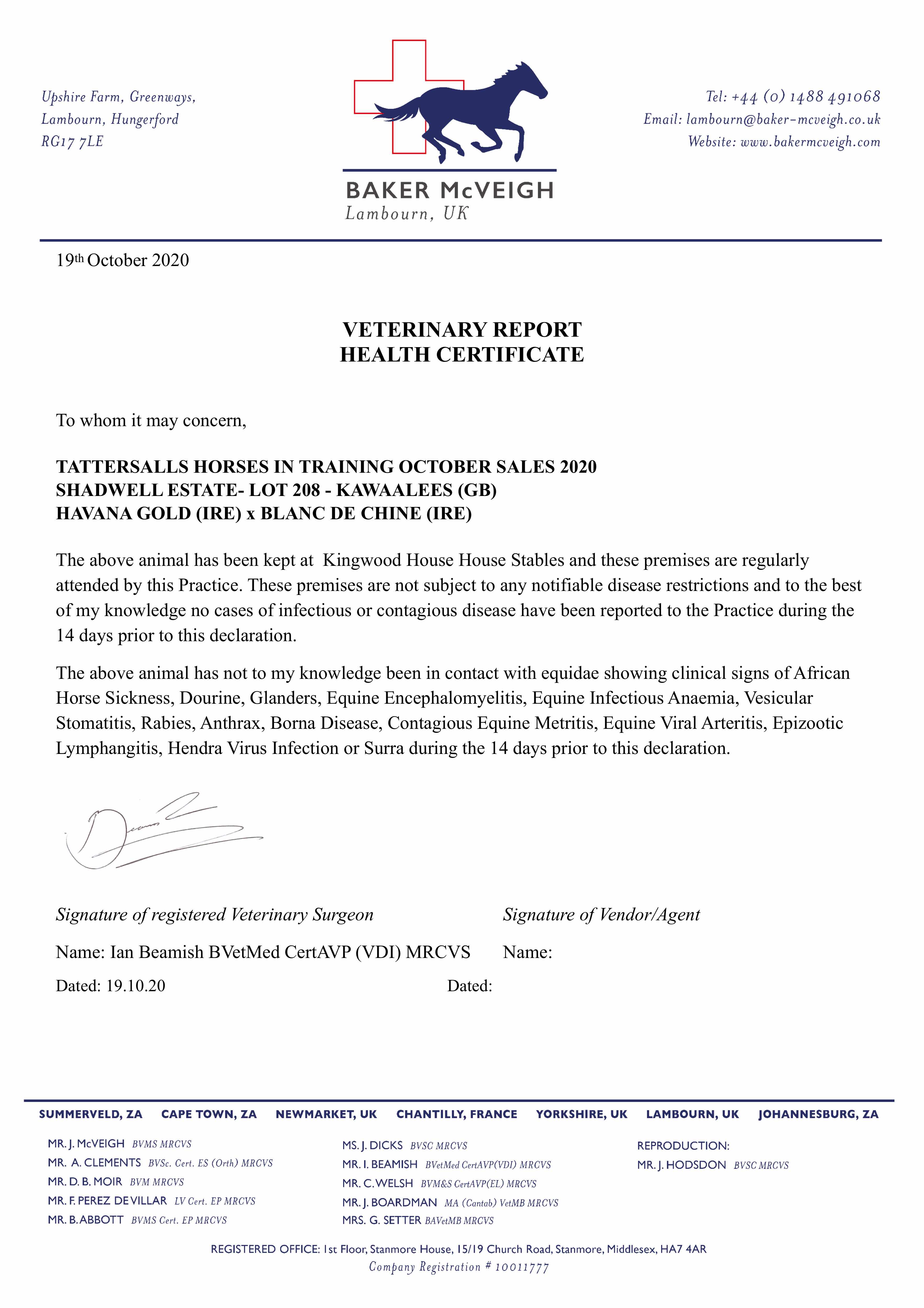 Online Sale - 15th December 2022 lot 84 A Breeding Right to Havana Grey (GB) (H.), a Gentleman=>Vendor 115,000 gns