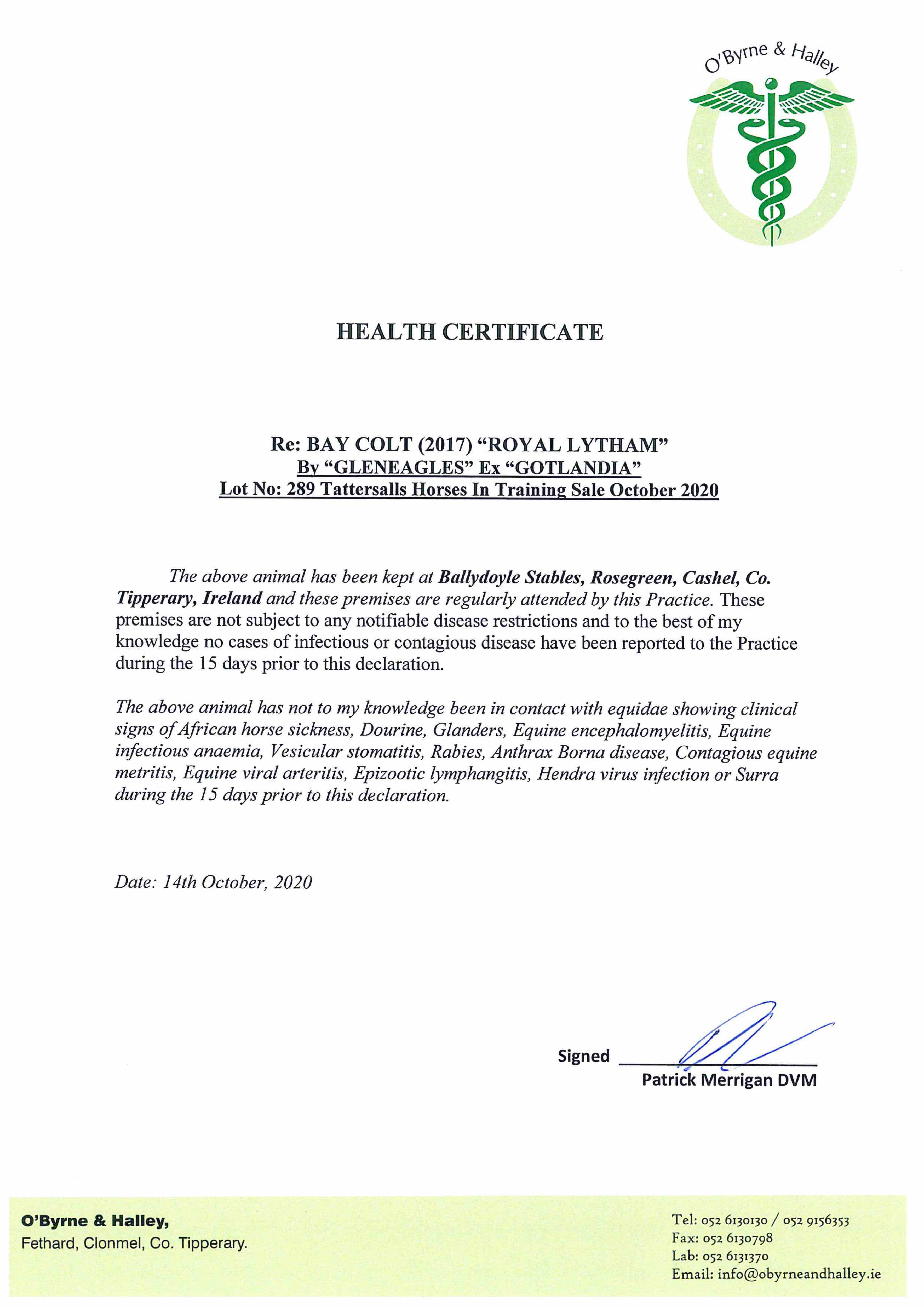 Online Charity Auction of Stallion Nominations lot 54 A Nomination to Royal Lytham (FR) (H.), =>Emmet McKenna £500
