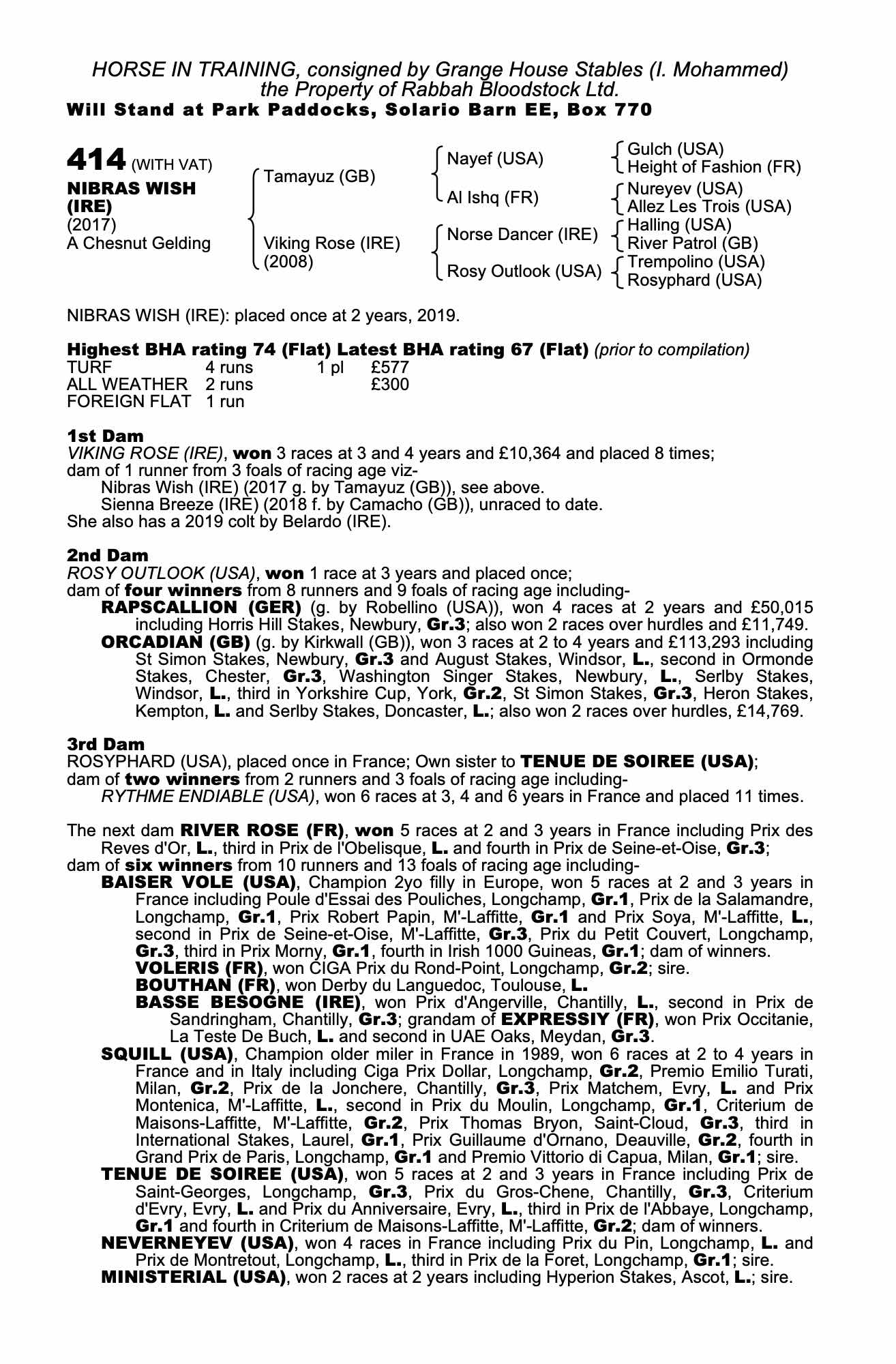 Online Sale - 18th January 2024 lot 46 Sienna Breeze (IRE) (M. by Camacho (GB)), The Trainer's House (Mrs L. Wadham)=>Deva Racing Group 2,200 gns