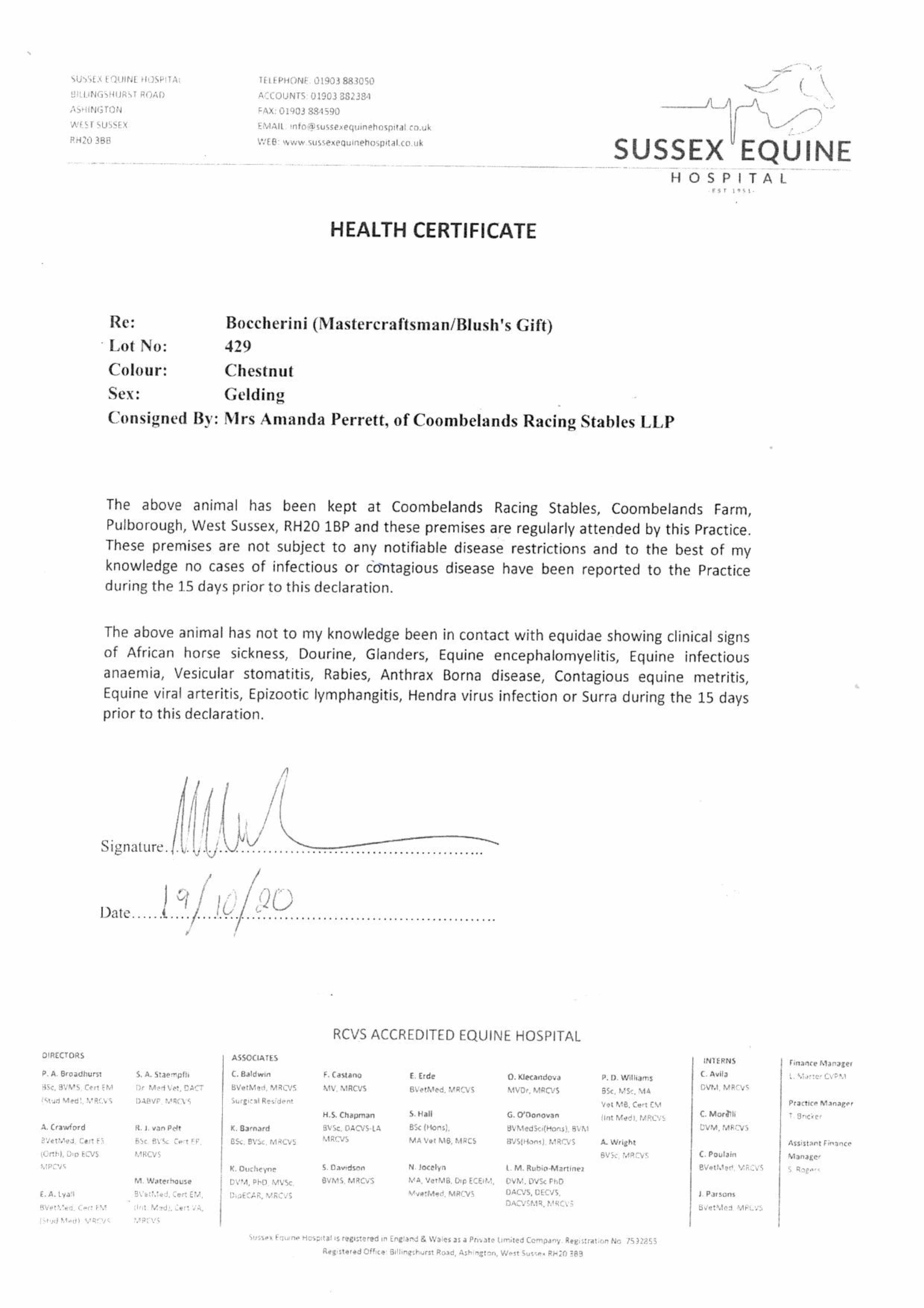 Consignor: Coombelands Racing Stables (Mrs A. Perrett)