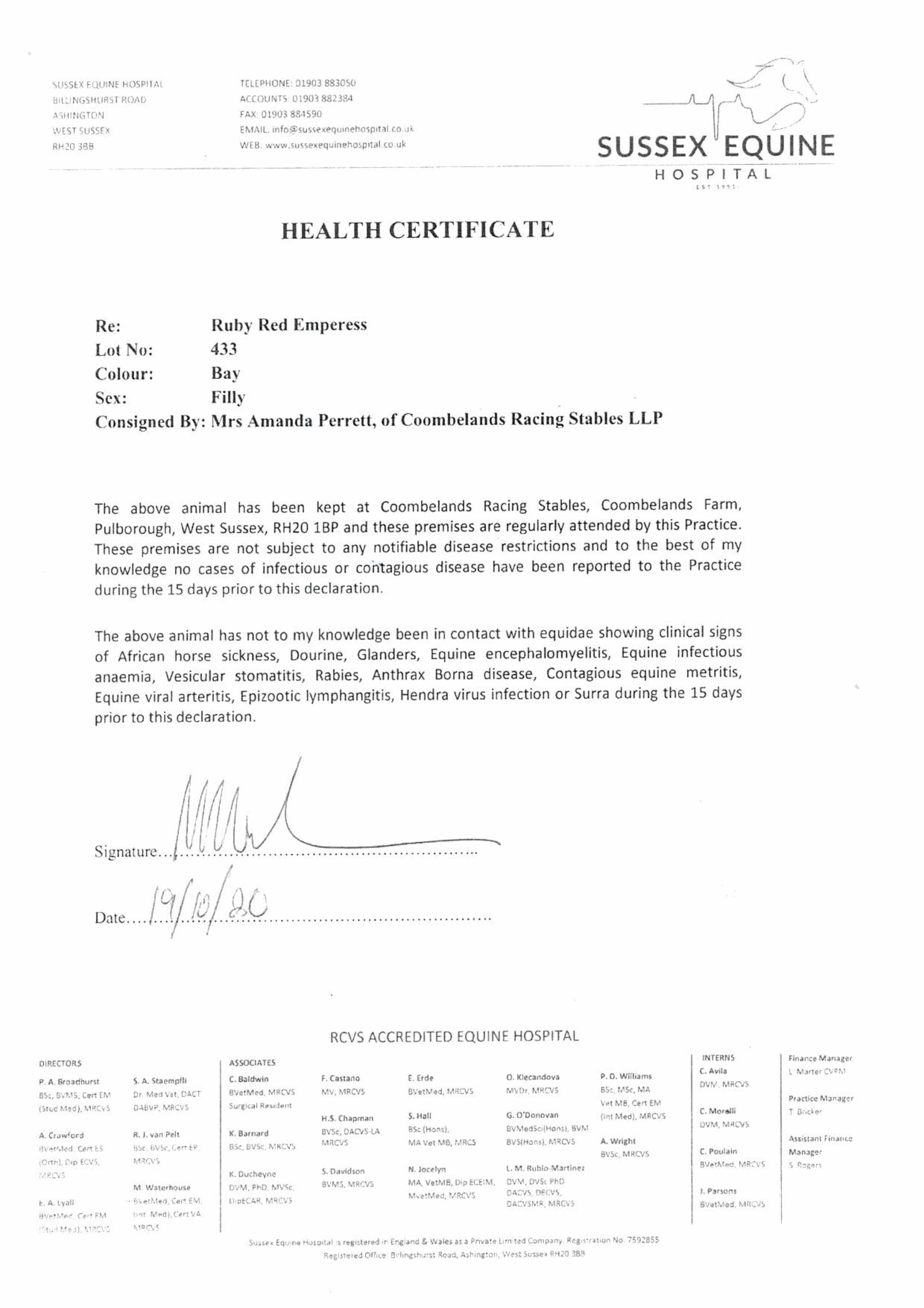 Consignor: Coombelands Racing Stables (Mrs A. Perrett)
