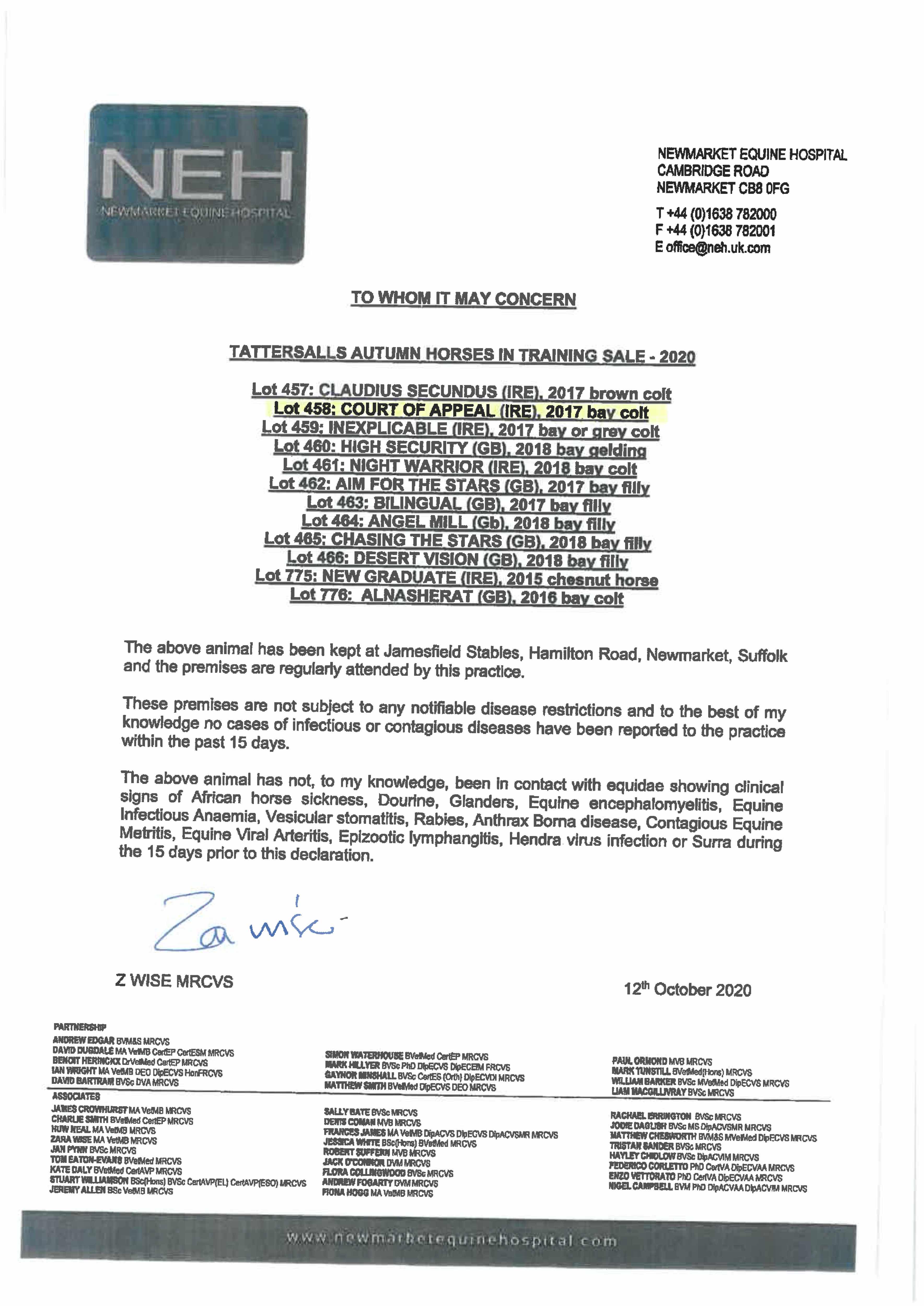 October Yearling Sale, Book 2 2020 lot 830 C. by Shamardal (USA) 2019, Genesis Green Stud=>Broadhurst Agency 100,000 gns