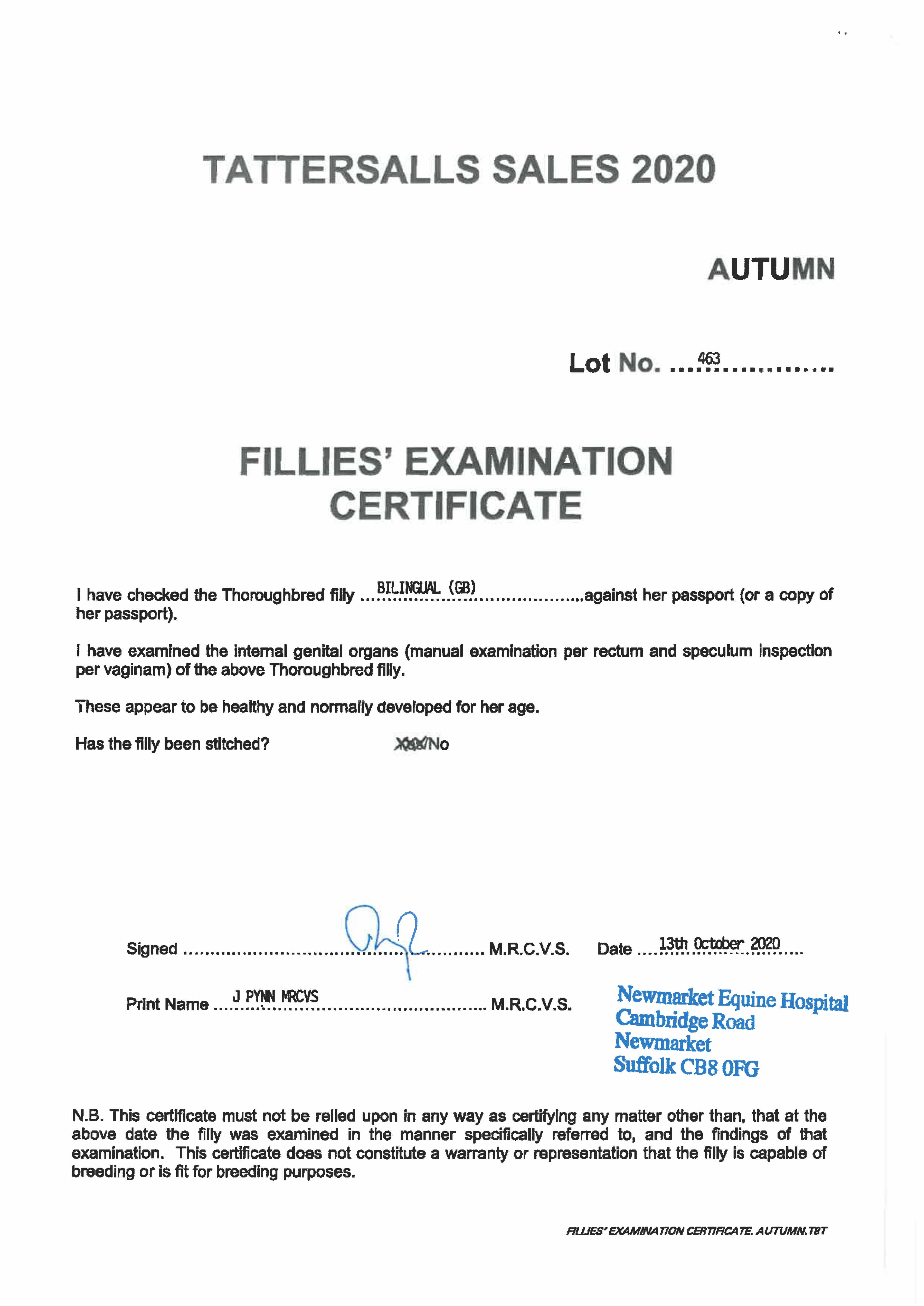 December Mare Sale 2021 lot 1931 Fire In The Rain (GB) (F. by Starspangledbanner (AUS)), Voute Sales Ltd. (Agent)=>D Easterby 1,000 gns