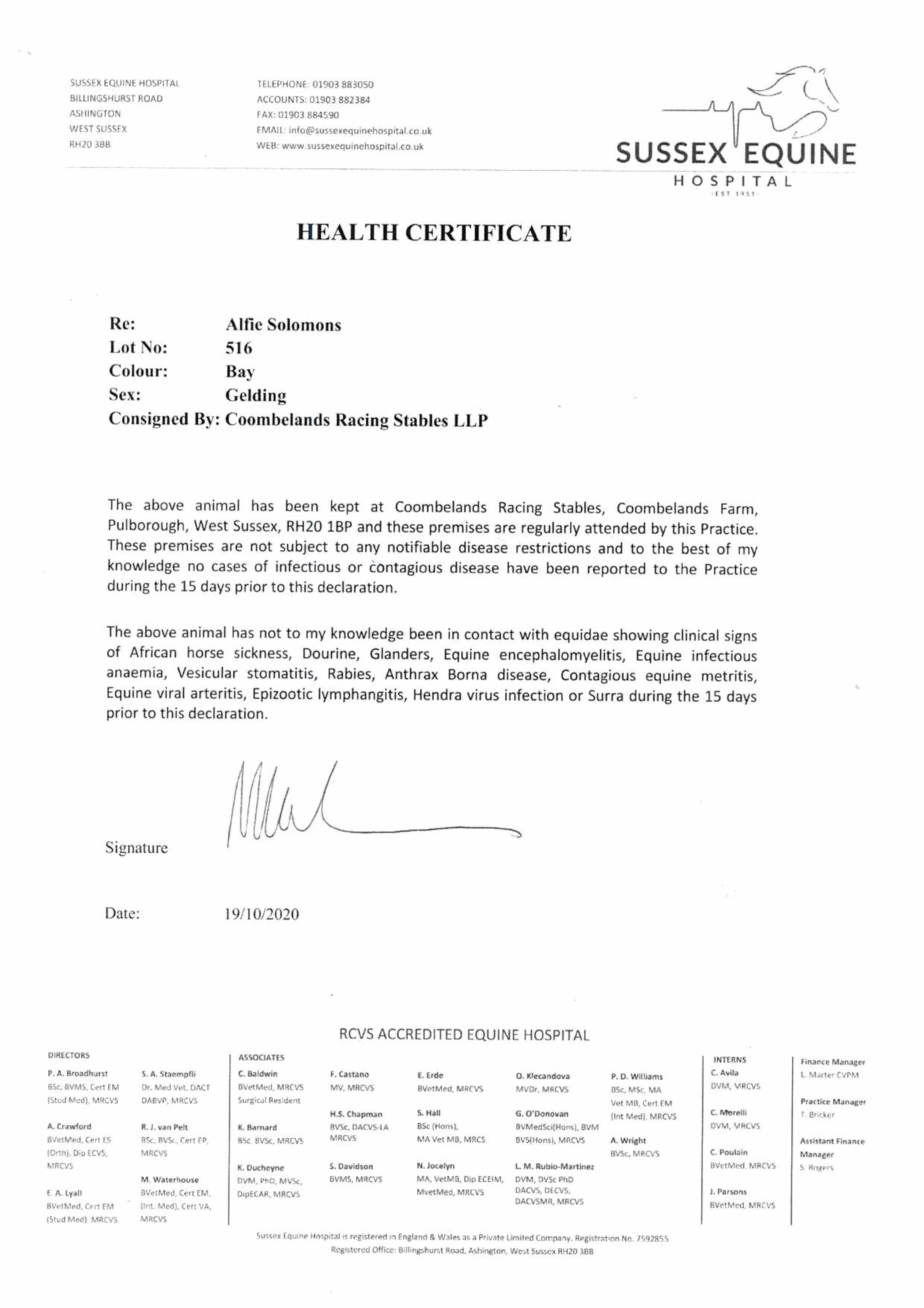 Consignor: Coombelands Racing Stables (Mrs A. Perrett)