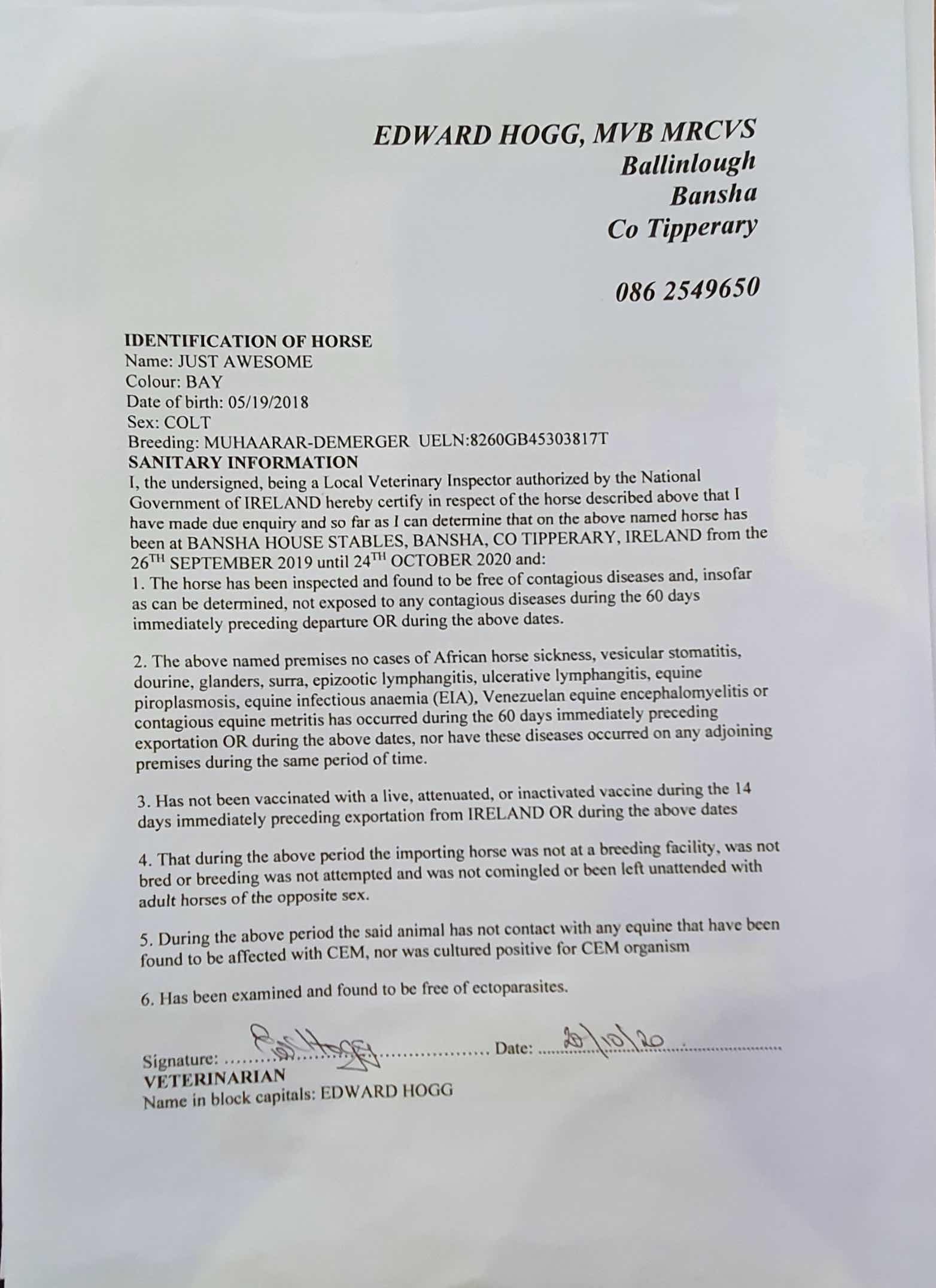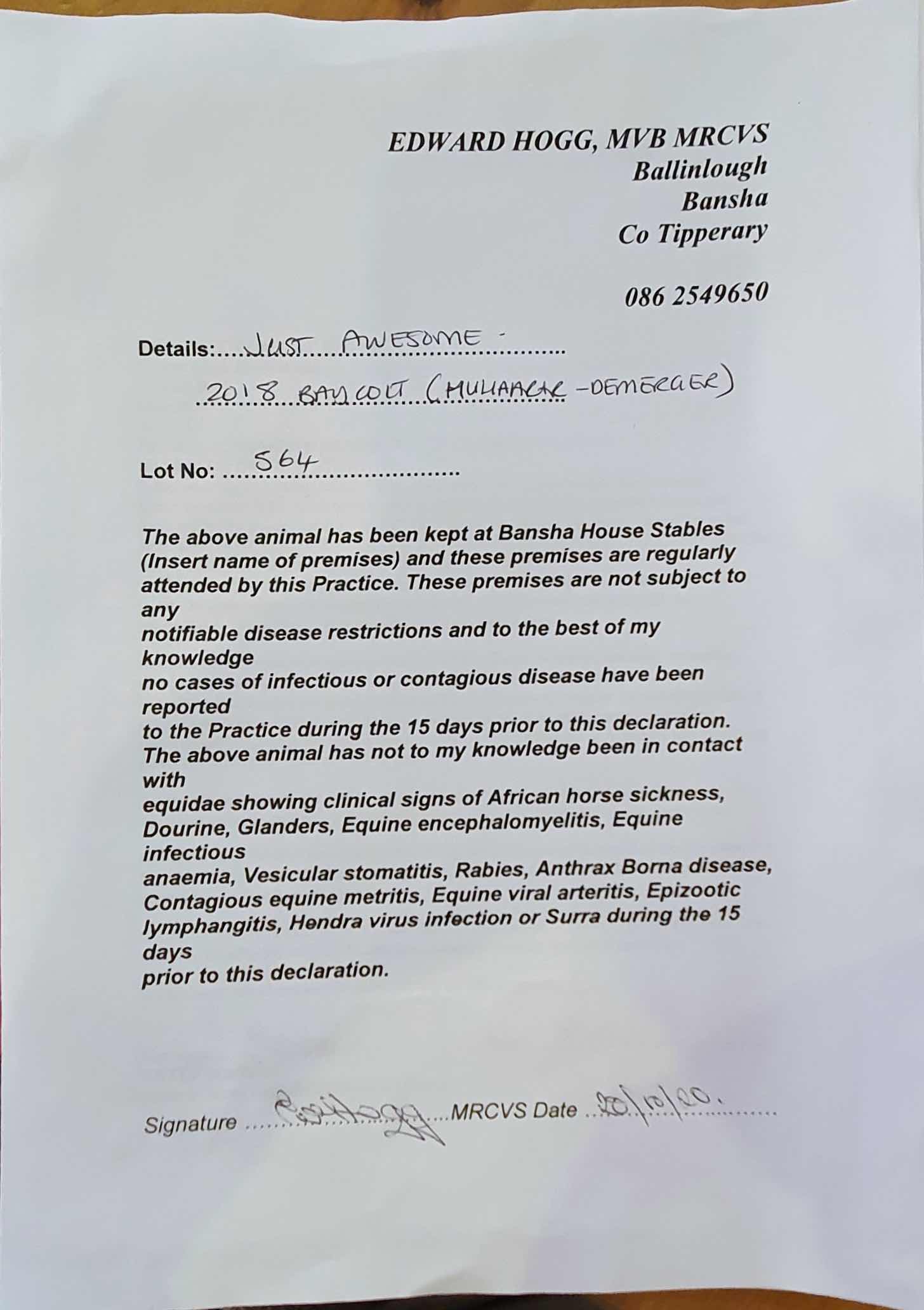 Consignor: Jamie Railton (Agent)