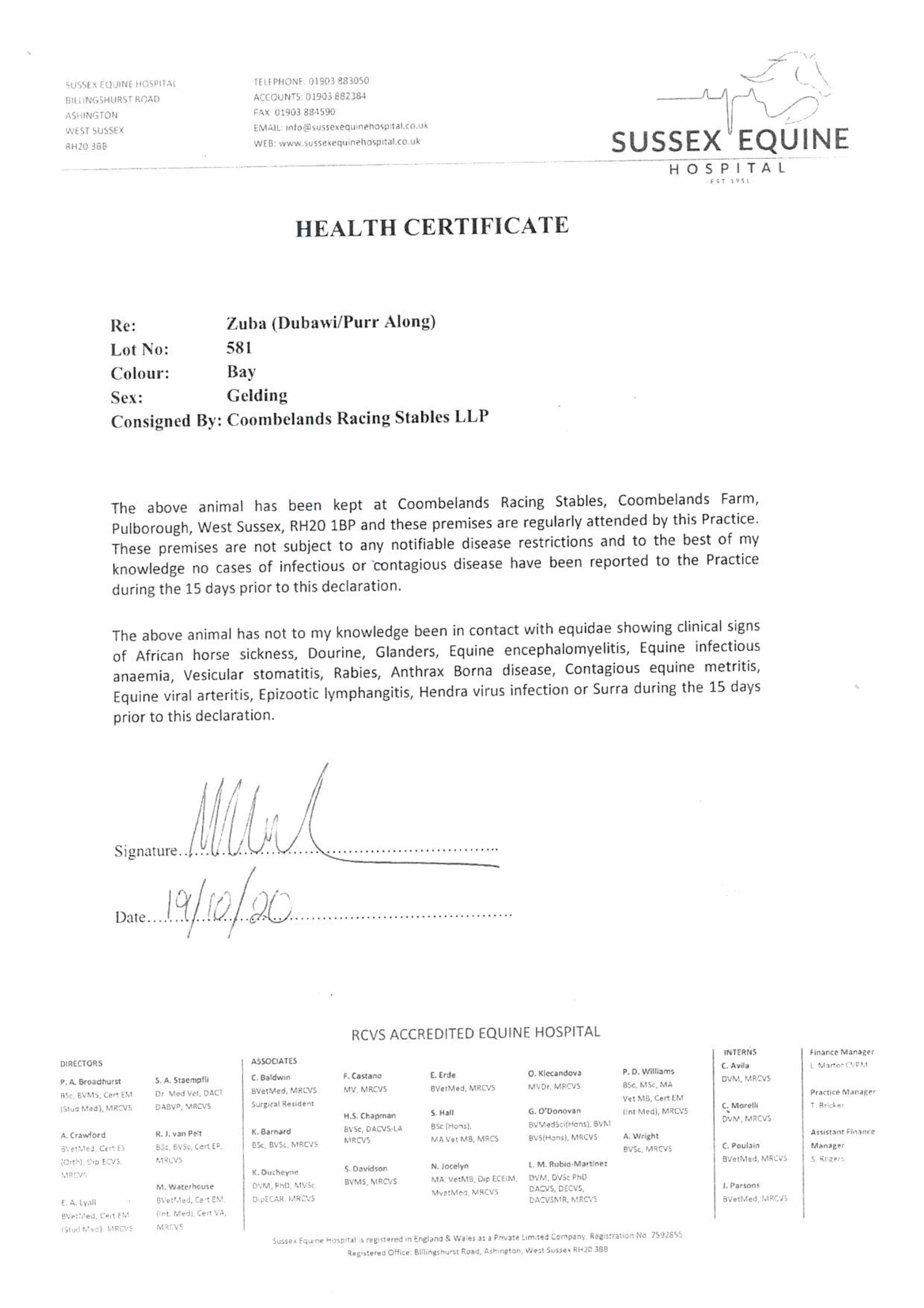 Consignor: Coombelands Racing Stables (Mrs A. Perrett)