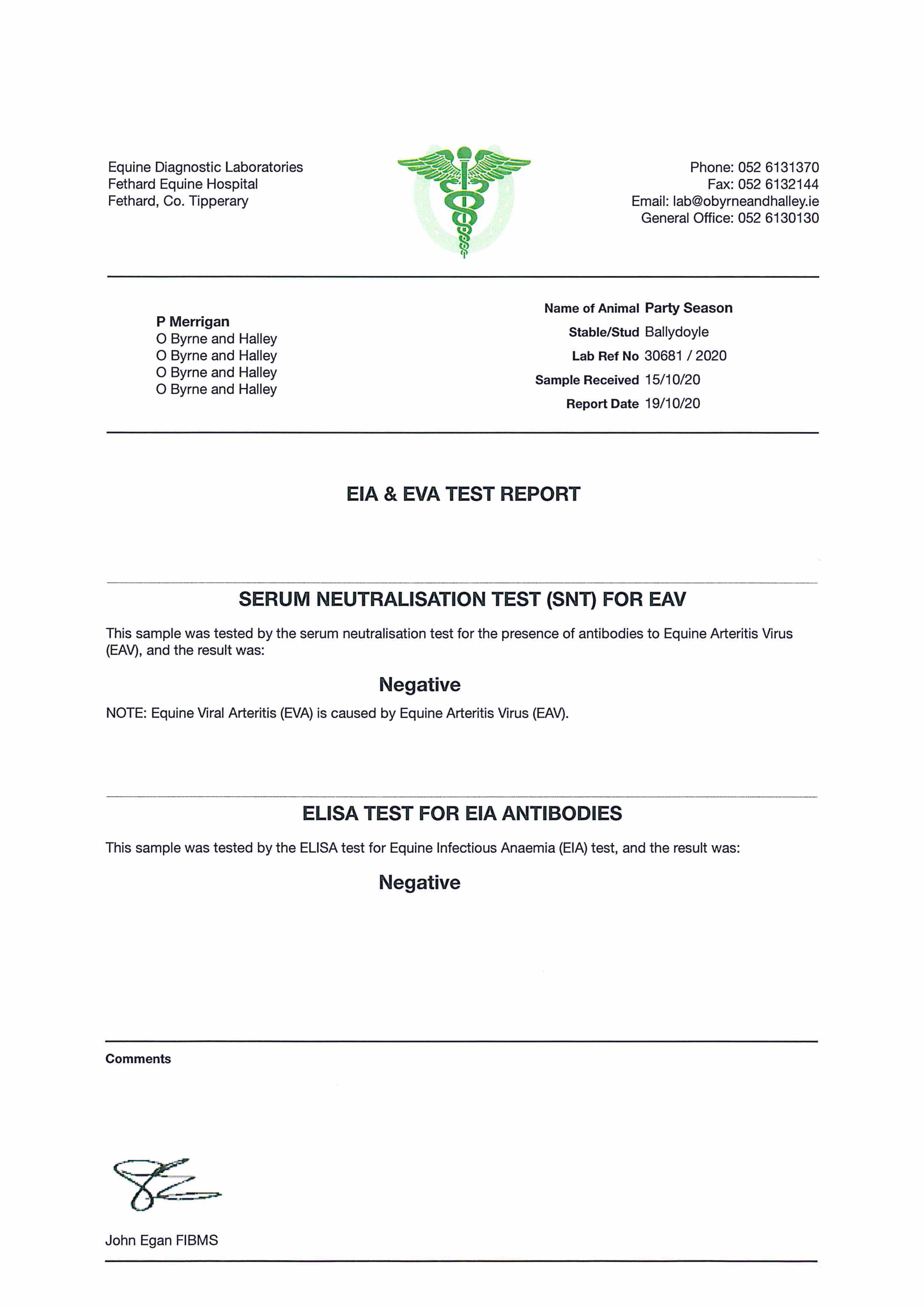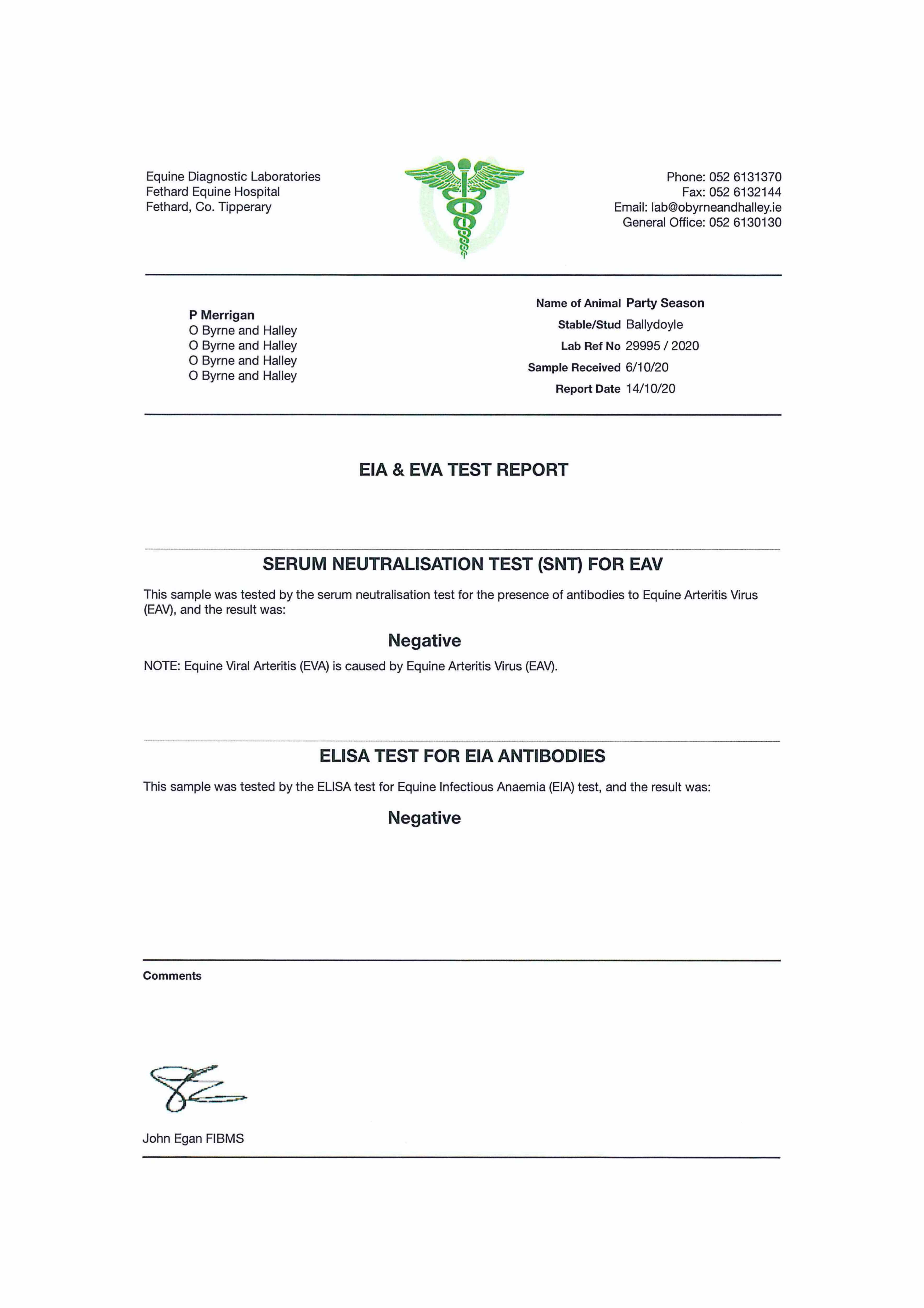 Piroplasmosis Certificate