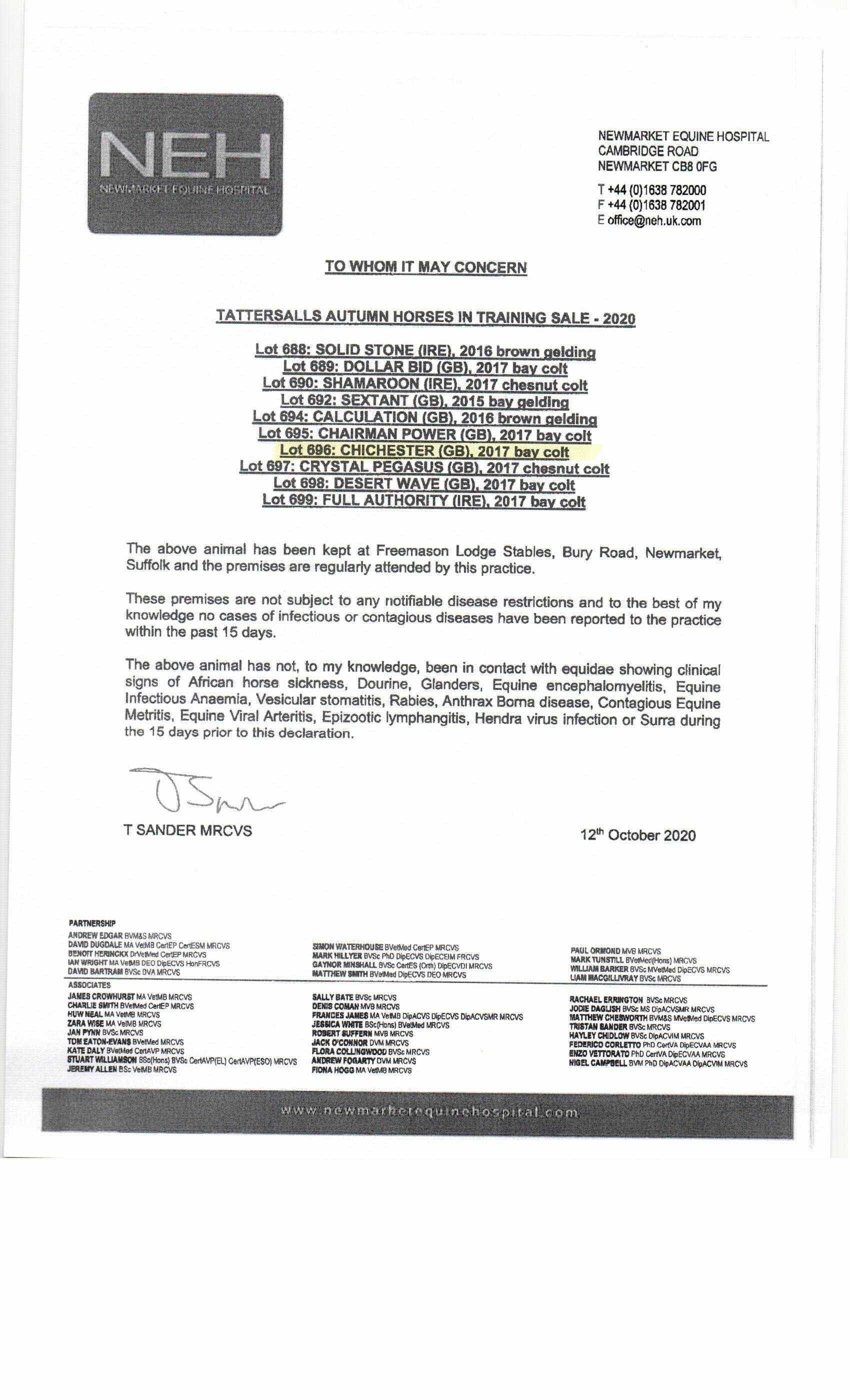 Consignor: Freemason Lodge Stables (Sir M. Stoute)