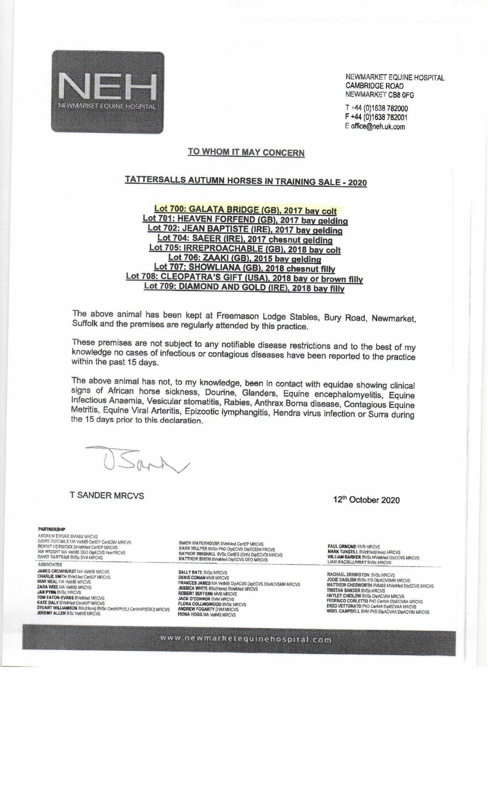 Autumn Horses In Training Sale 2020 lot 705 Irreproachable (GB) (C. by Frankel (GB)), Freemason Lodge Stables (Sir M. Stoute)=>Faisal al Matary 7,000 gns
