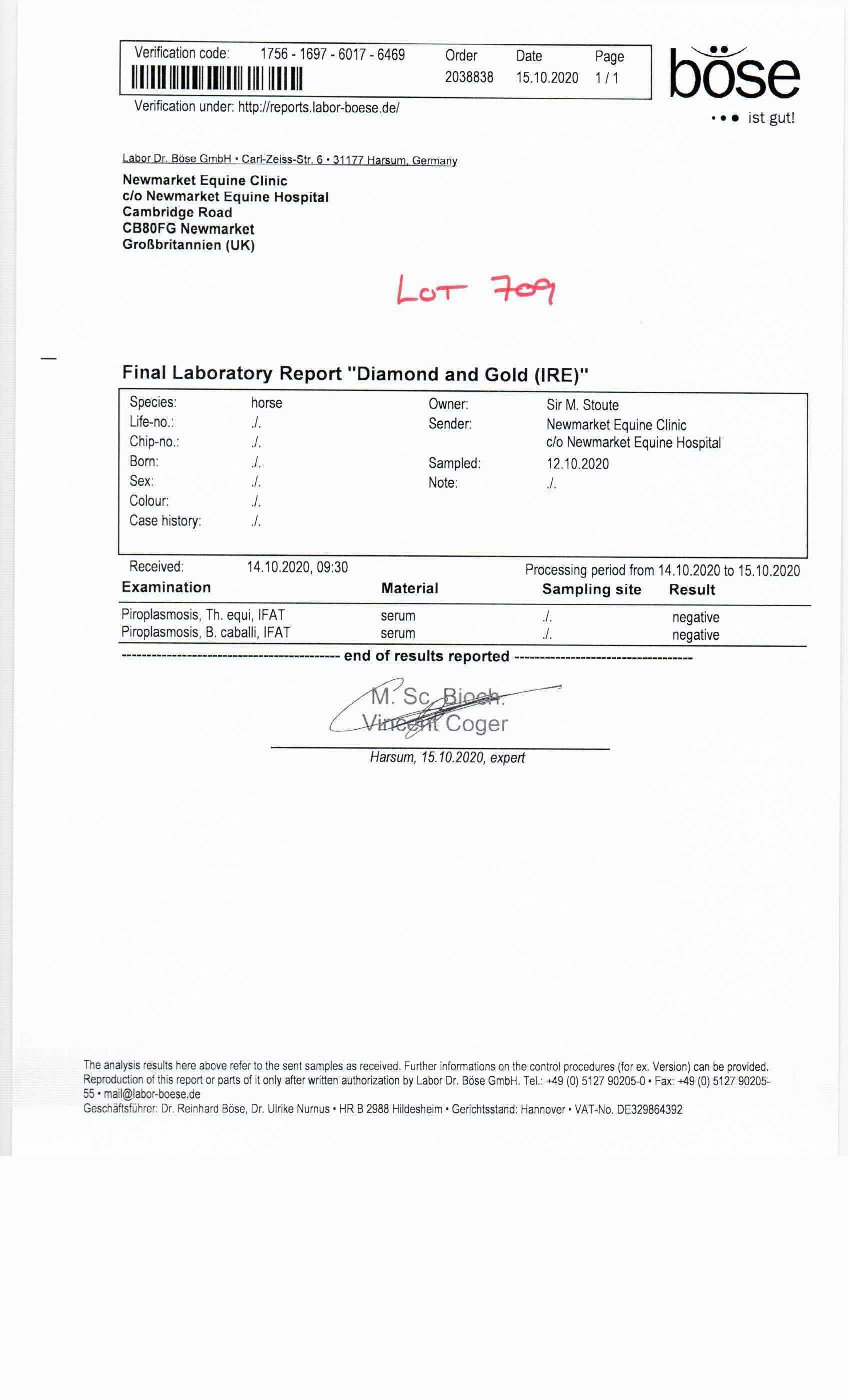 Consignor: Freemason Lodge Stables (Sir M. Stoute)