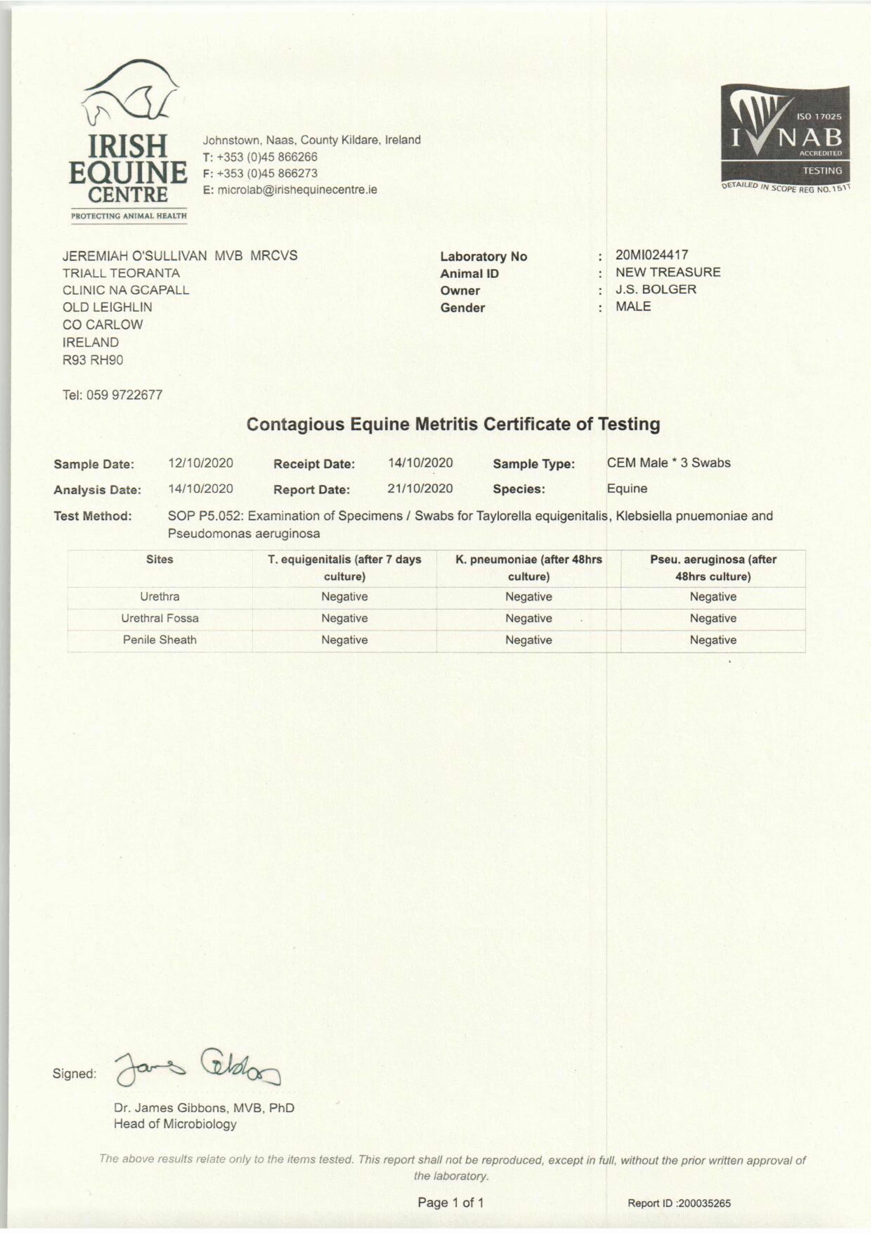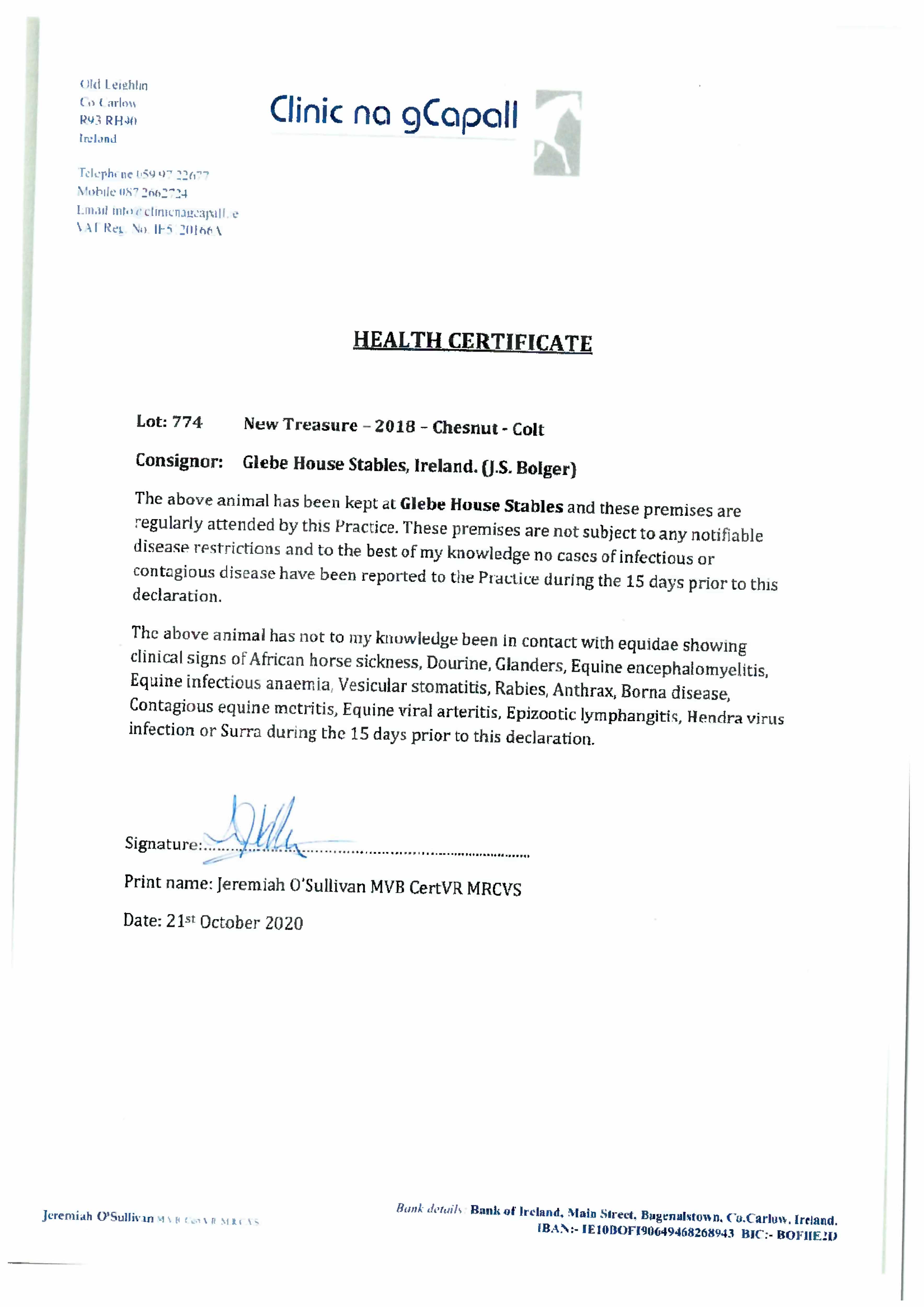 Consignor: Glebe House Stables, Ireland (J. S. Bolger)