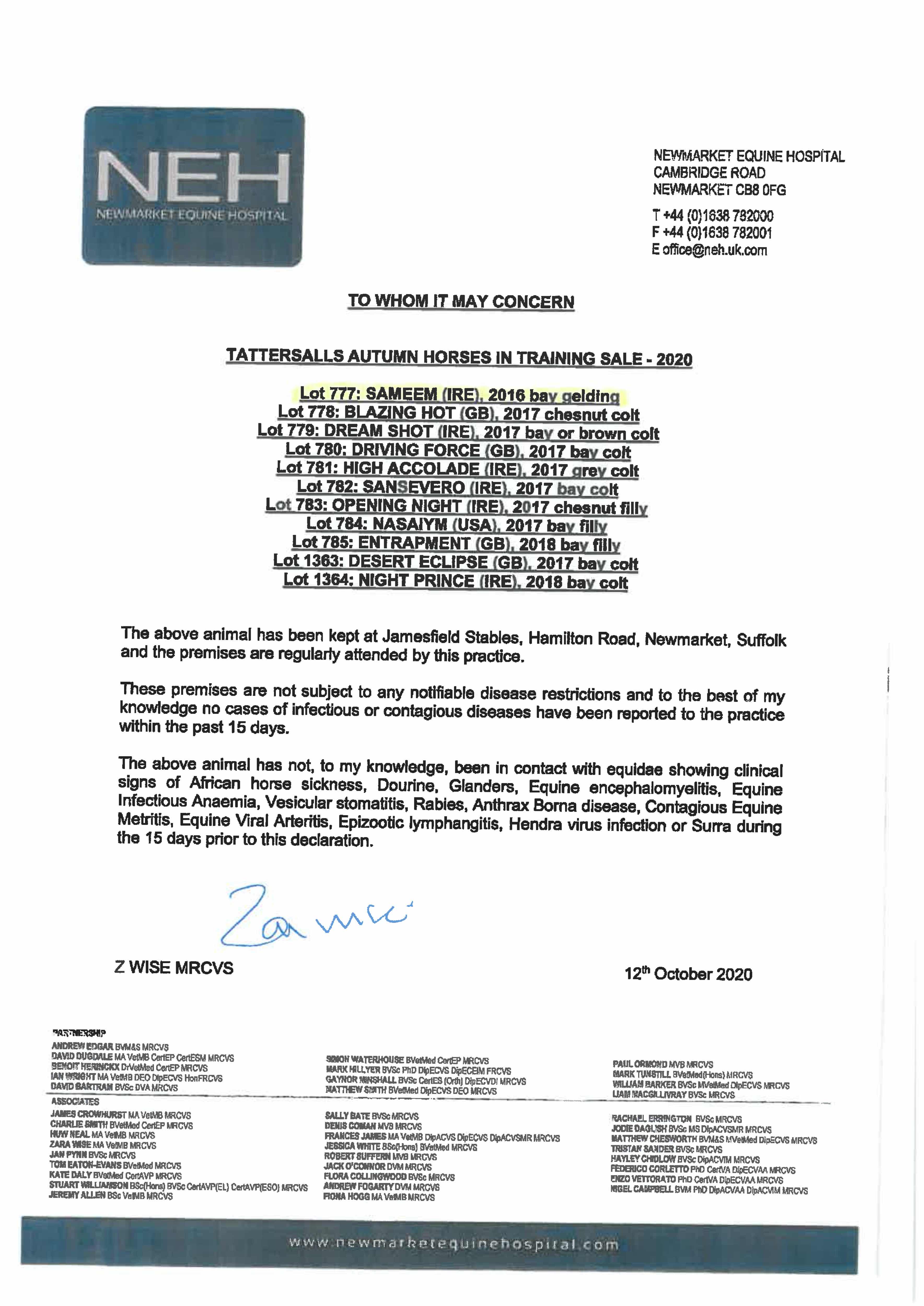 October Yearling Sale, Book 1 2013 lot 244 F. by Vale of York (IRE) 2012, Genesis Green Stud=>William Haggas 150,000 gns