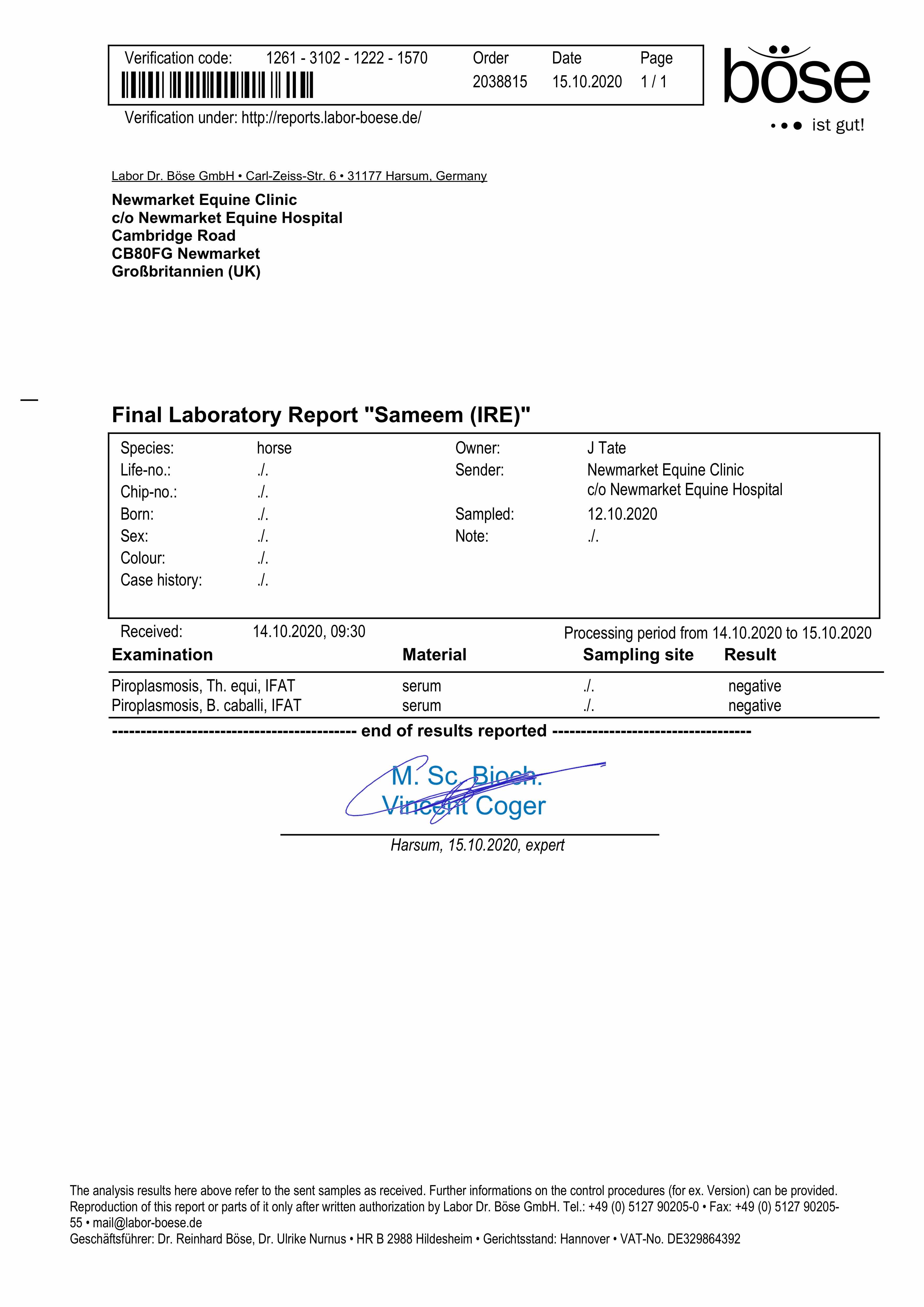 Consignor: Jamesfield Stables (J. Tate)