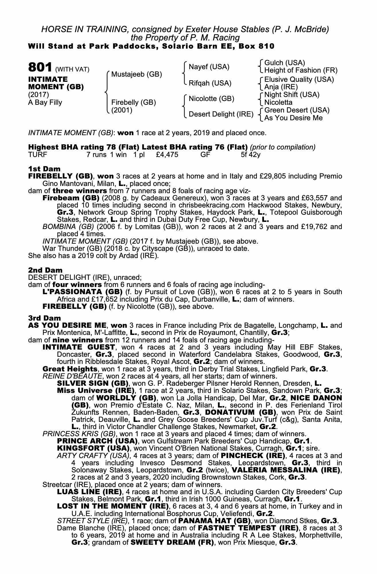 Consignor: Exeter House Stables (P. J. McBride)