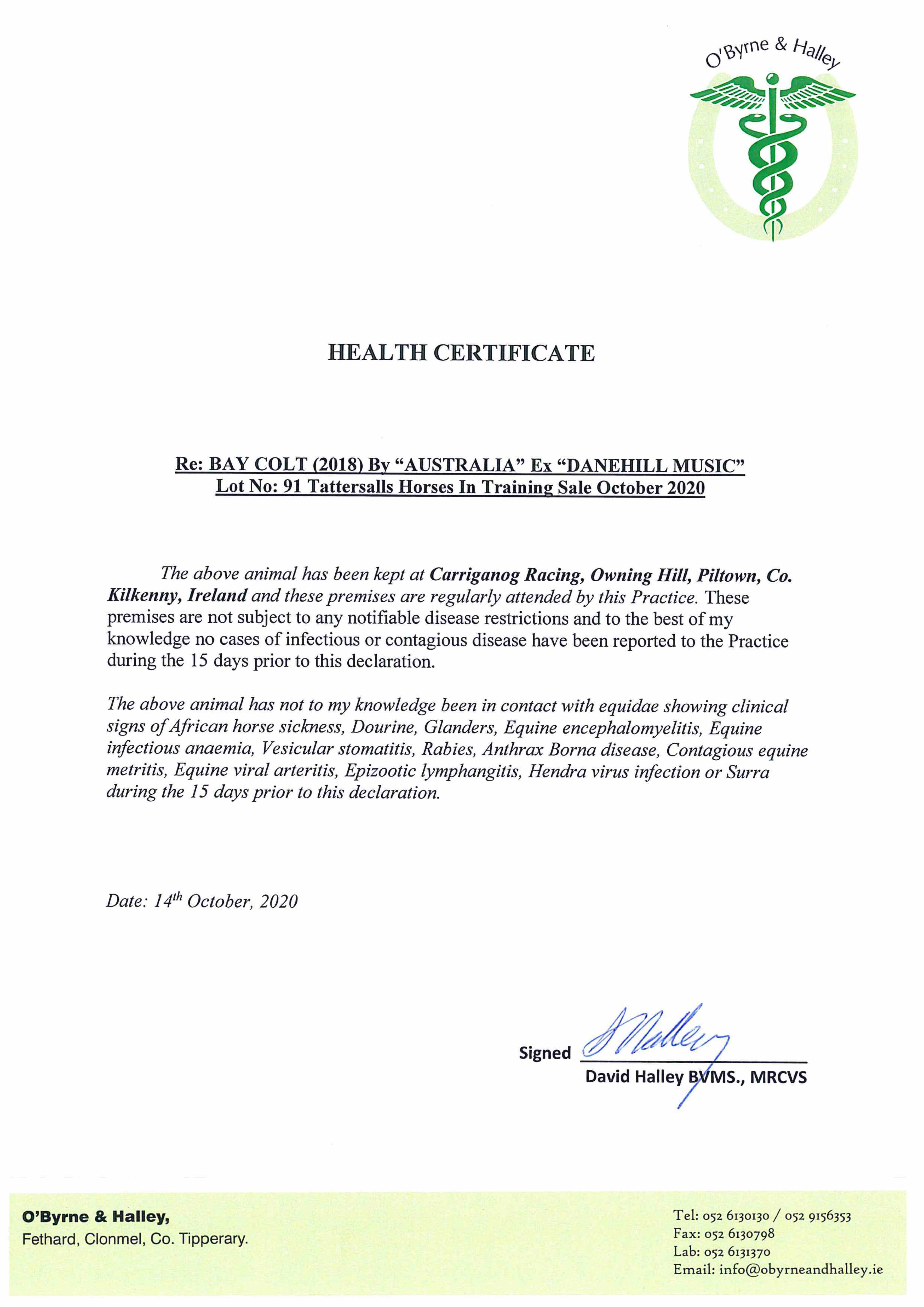 Consignor: Carriganog Racing, Ireland (J. P. O'Brien)
