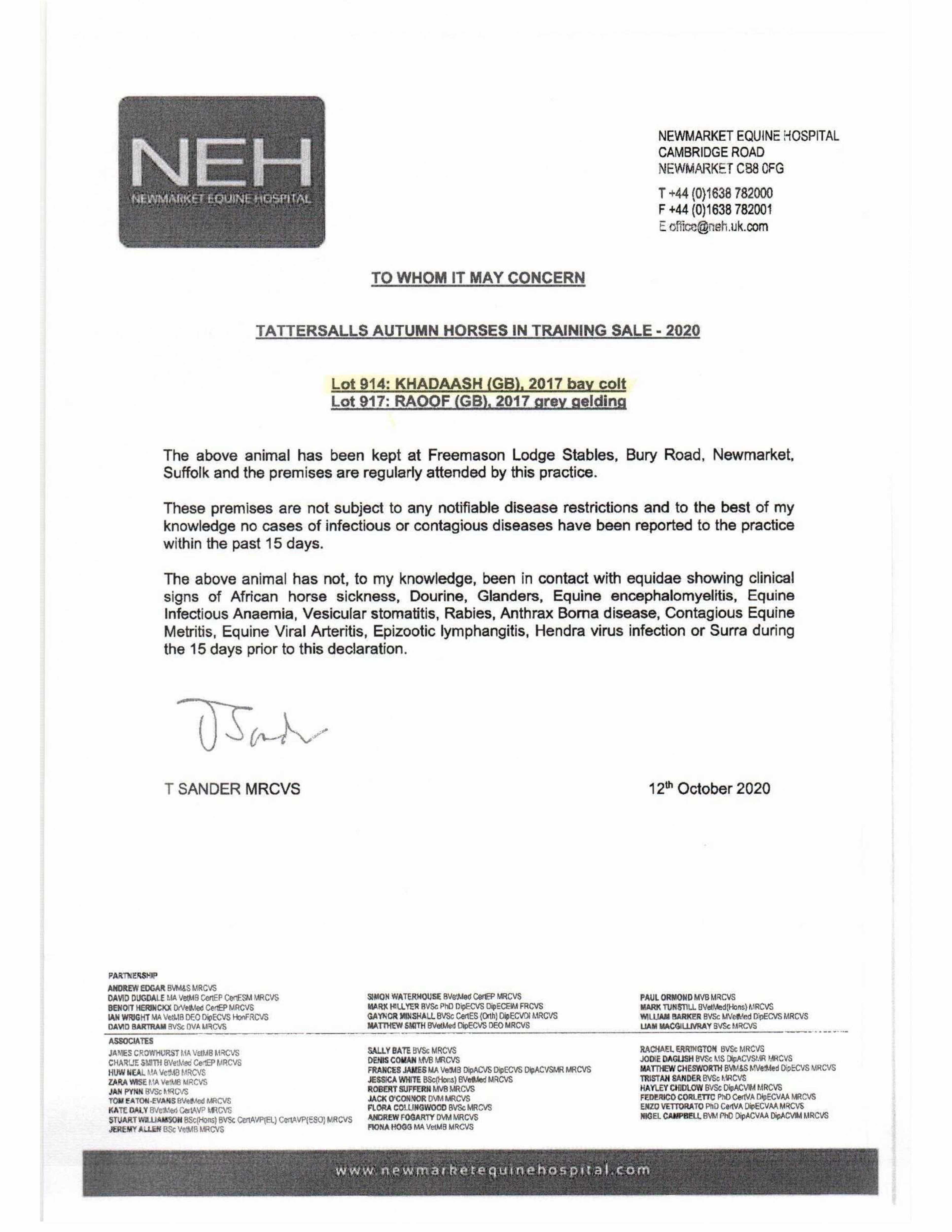 October Yearling Sale, Book 2 2018 lot 1143, Newsells Park Stud Ltd.=>Shadwell Estate Company 200,000 gns