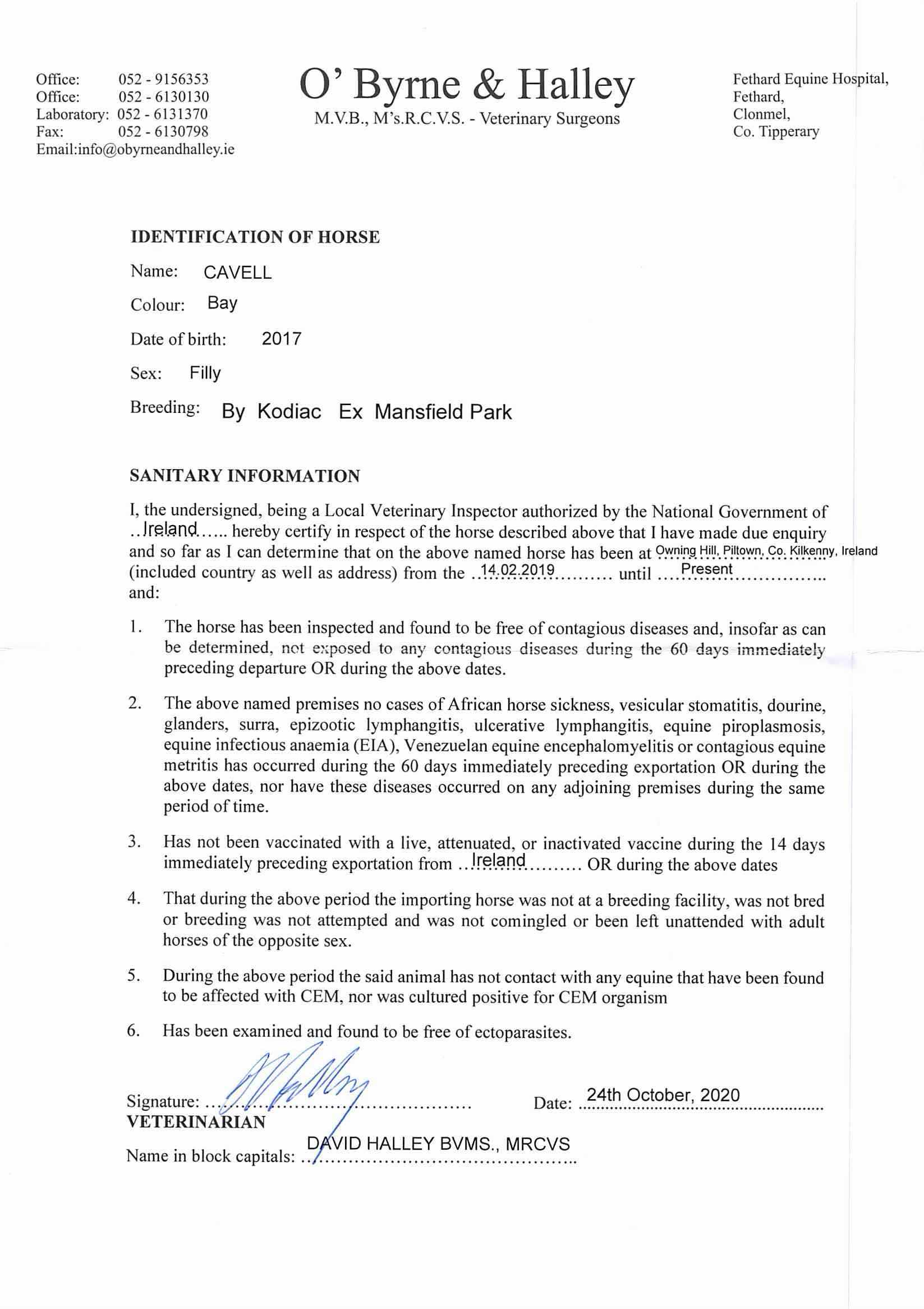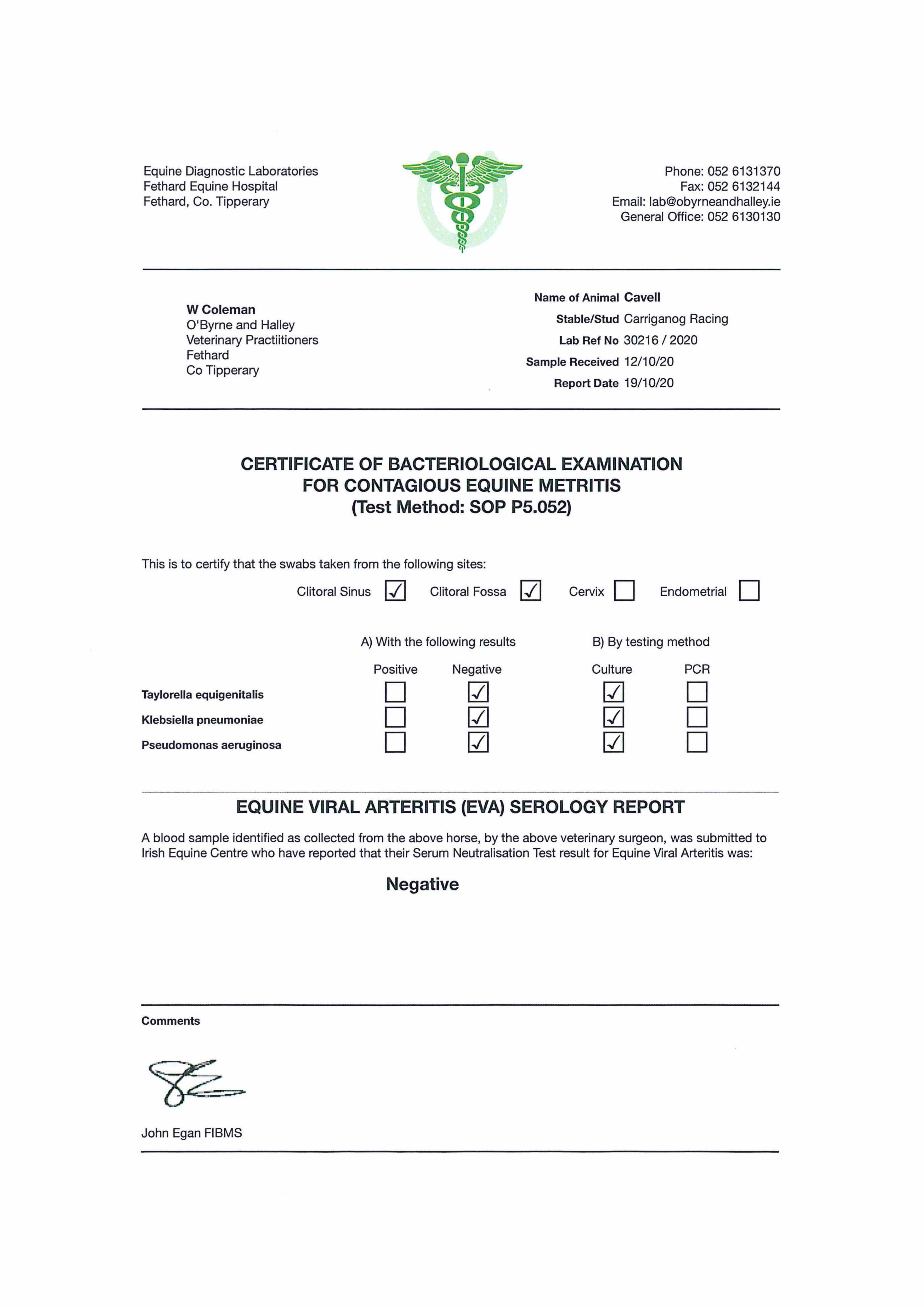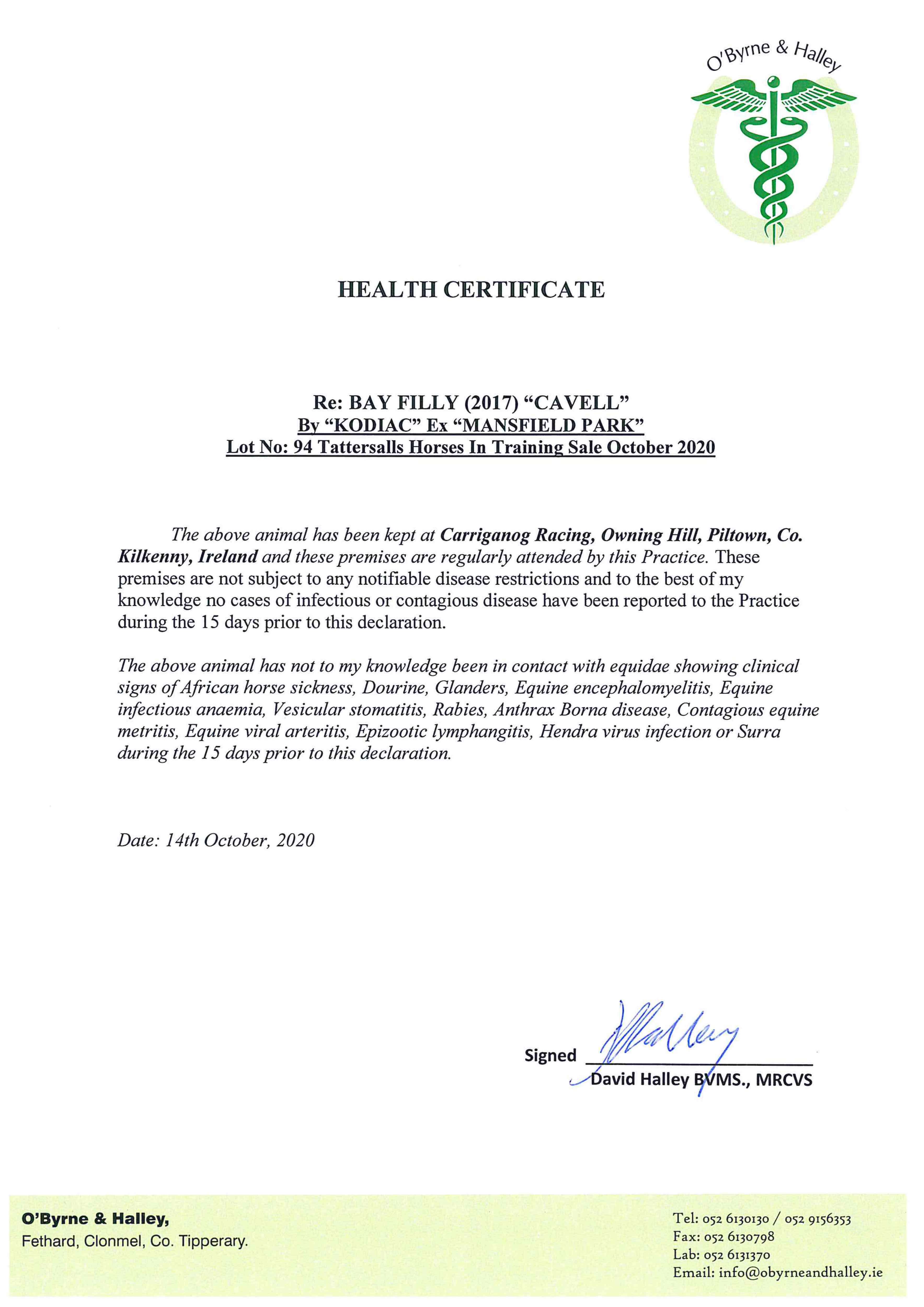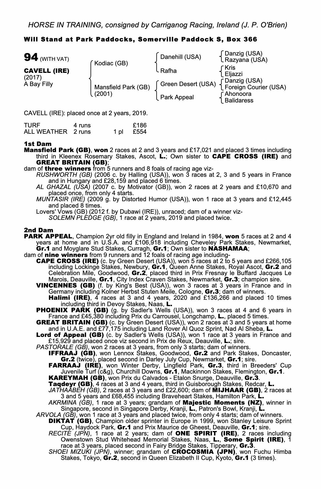 Consignor: Carriganog Racing, Ireland (J. P. O'Brien)