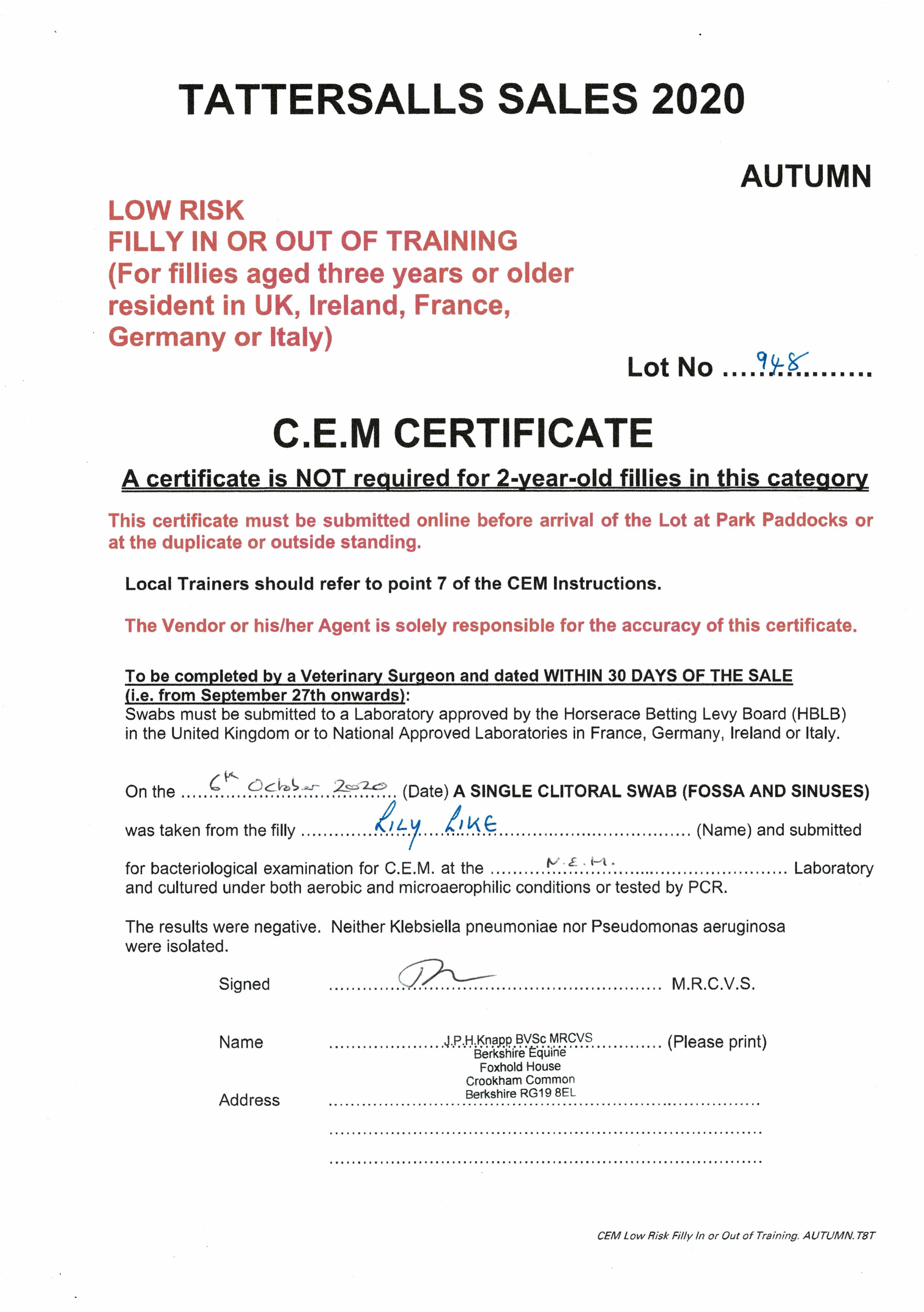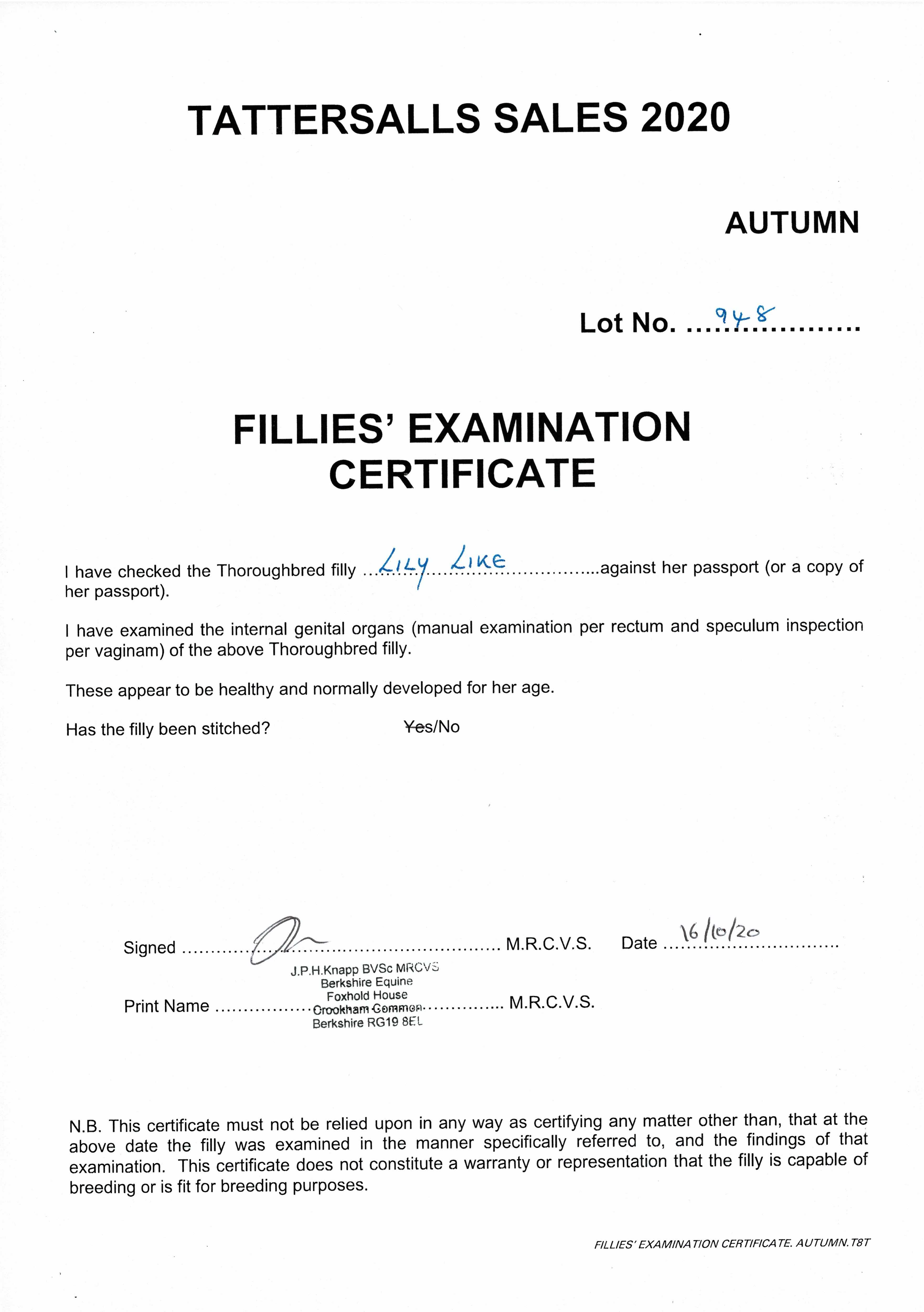 December Mare Sale 2019 lot 1669 Lenya (GB) (F. by Dark Angel (IRE)), The National Stud Ltd.=>Marco Bozzi Bloodstock 10,000 gns