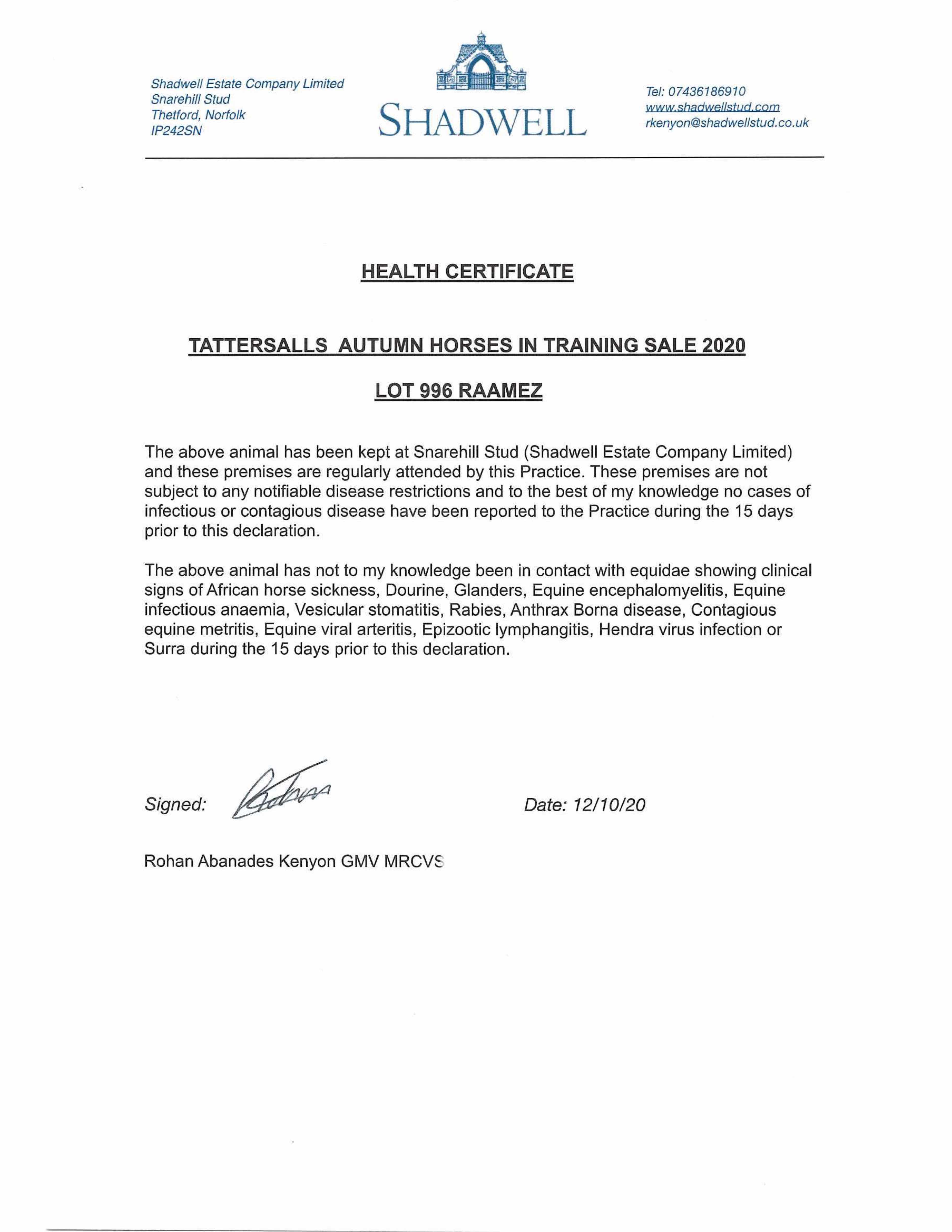 Consignor: Shadwell Estate Company Ltd.
