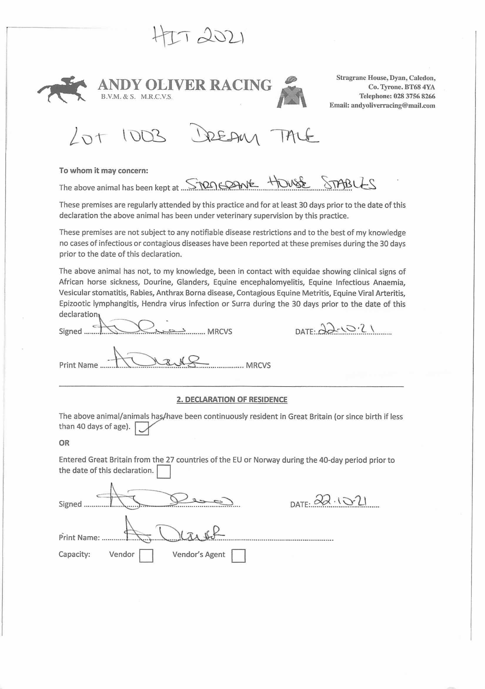 Consignor: Stragrane House Stables (A. Oliver)