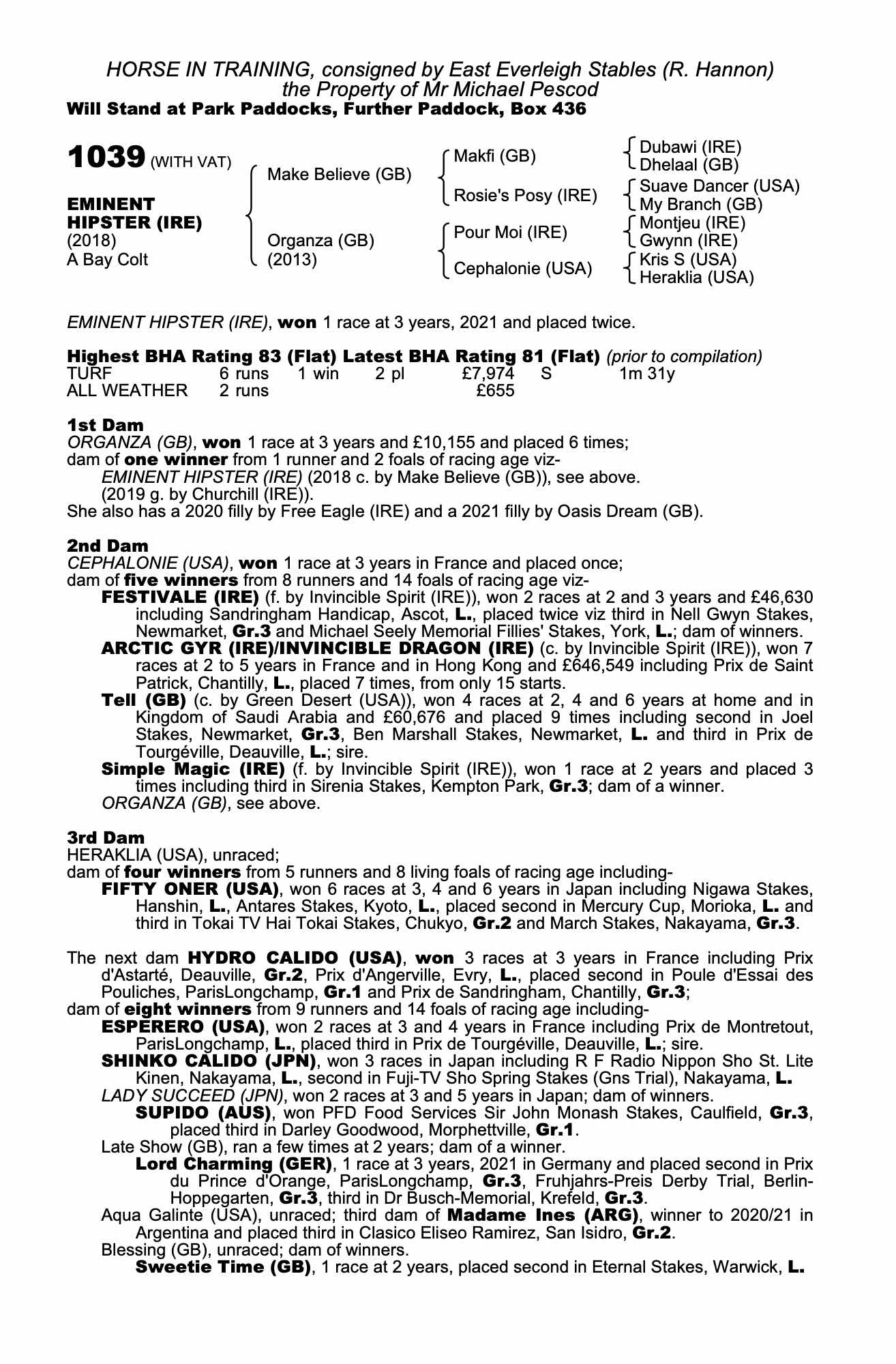 Consignor: East Everleigh Stables (R. Hannon)