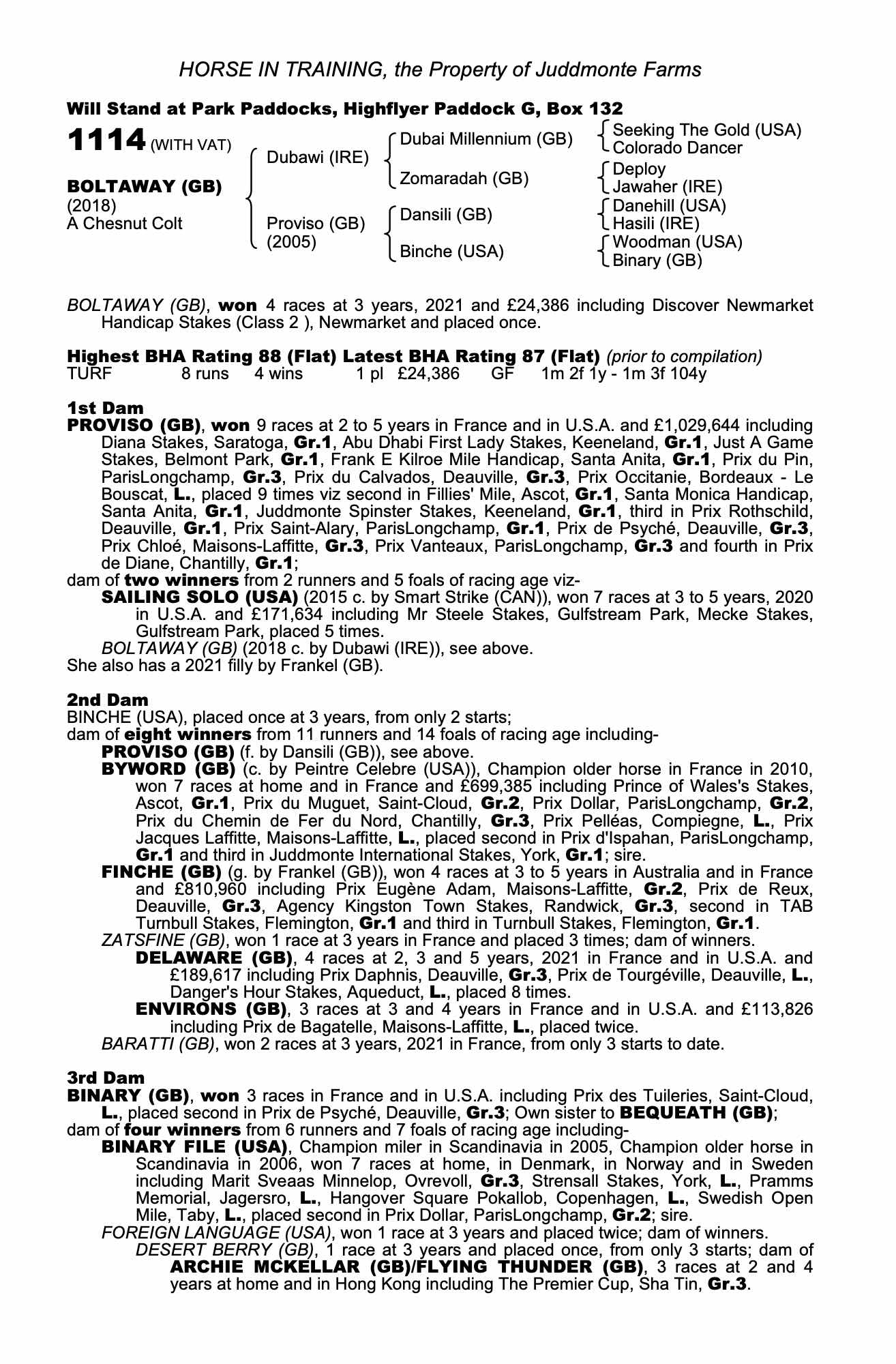 Guineas Horses in Training Sale 2025 lot 150 Provision (GB) (C. by Wootton Bassett (GB)), Juddmonte=>Adam Burton Bloodstock / Alsihan Stable 8,000 gns