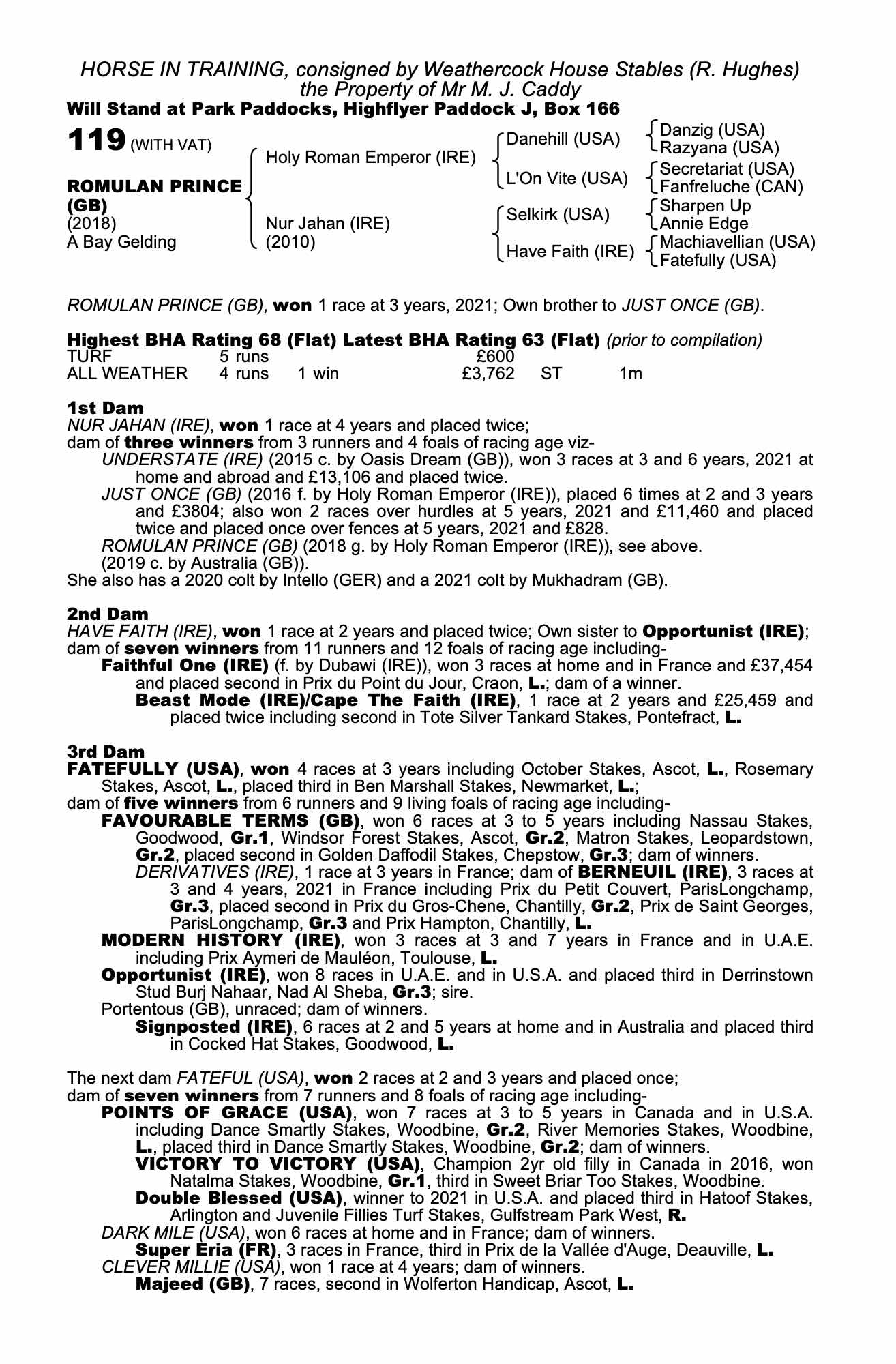 Consignor: Weathercock House Stables (R. Hughes)