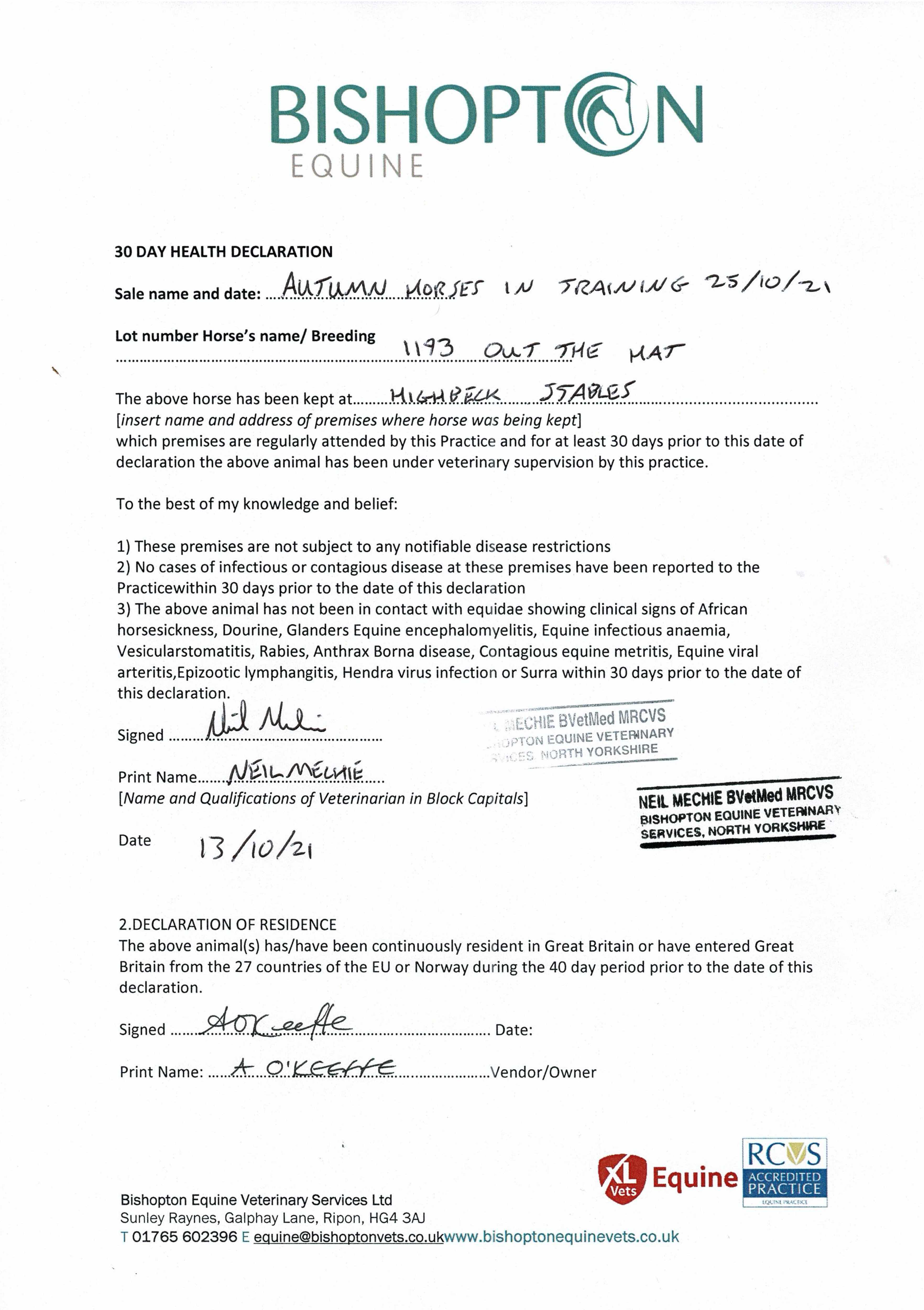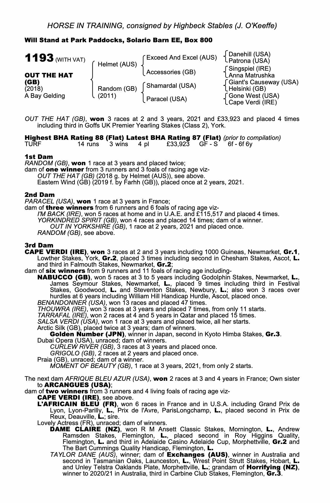 Consignor: Highbeck Stables (J. O'Keeffe)