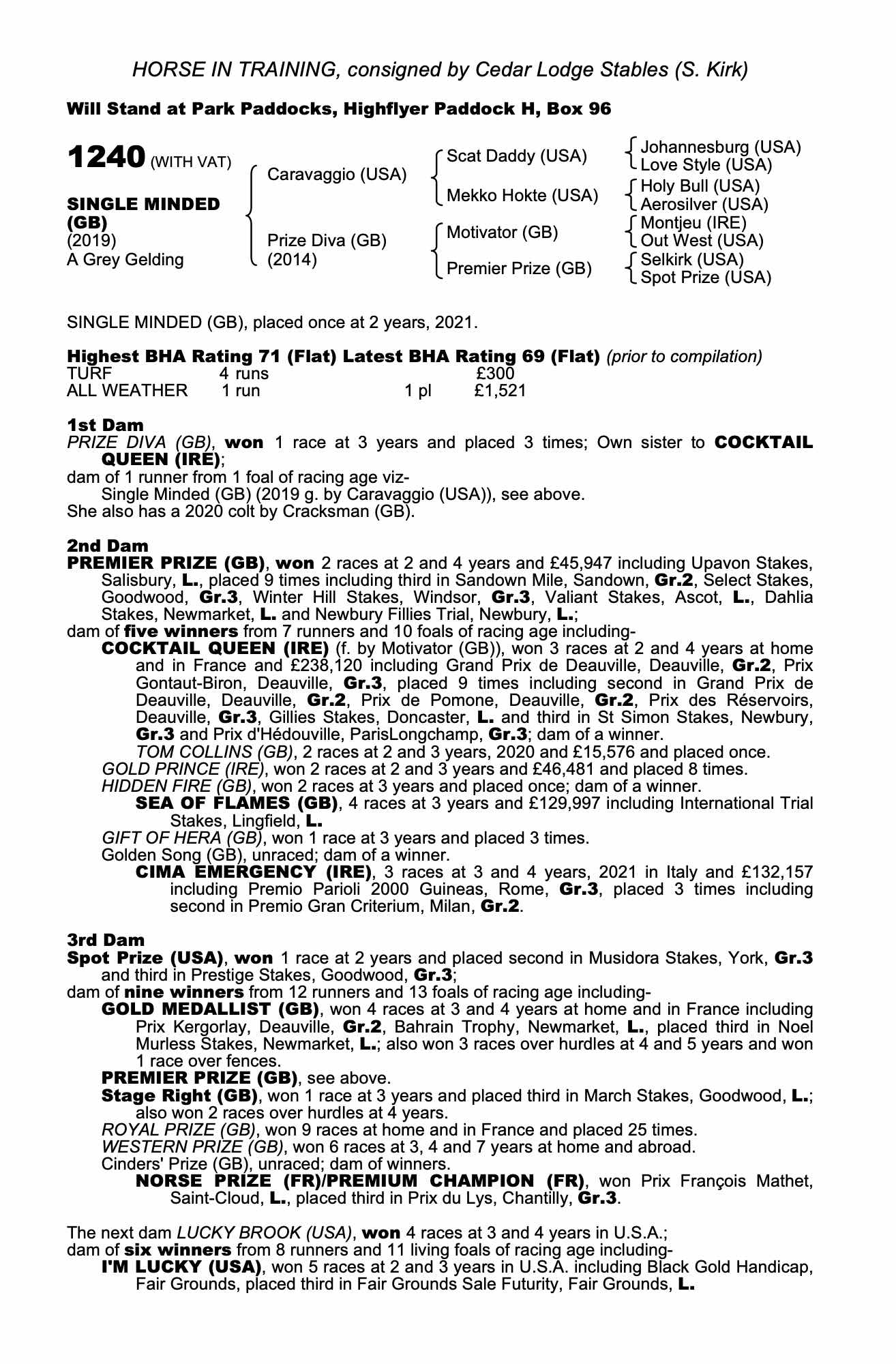 Consignor: Cedar Lodge Stables (S. Kirk)