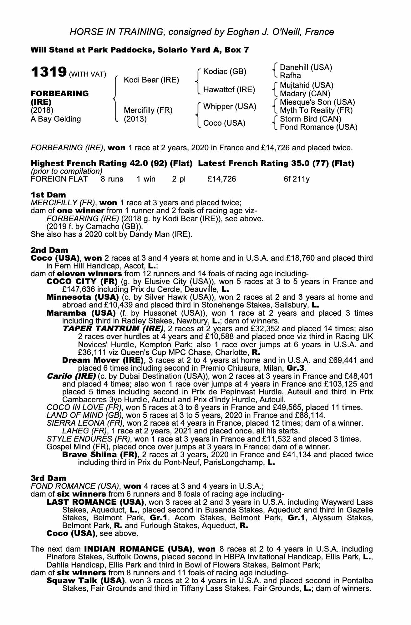 Autumn Horses In Training Sale 2024 lot 1001 Pitney (IRE) (G. by Mehmas (IRE)), The Castlebridge Consignment=>Dare To Dream Racing 8,000 gns
