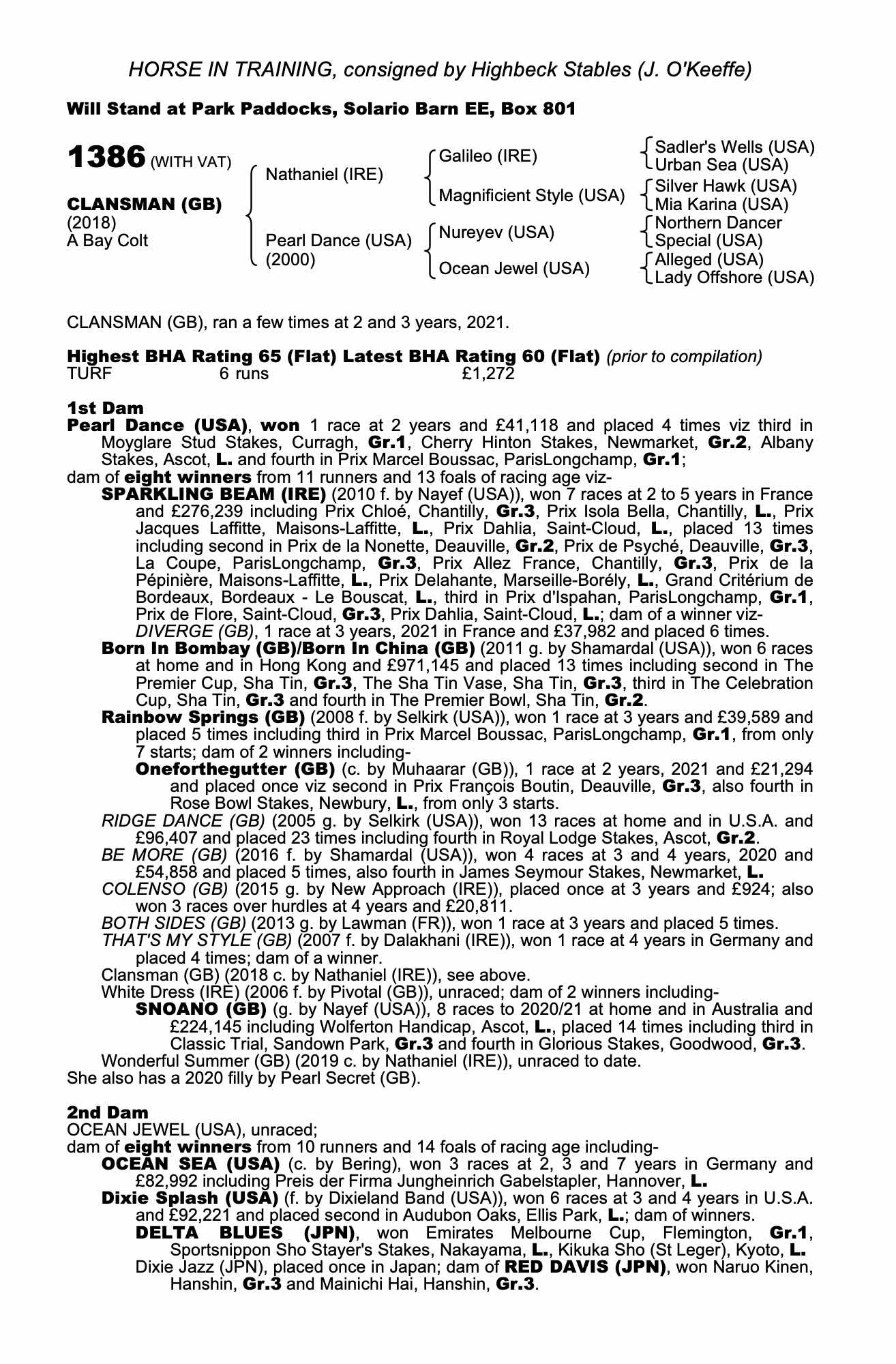Consignor: Highbeck Stables (J. O'Keeffe)