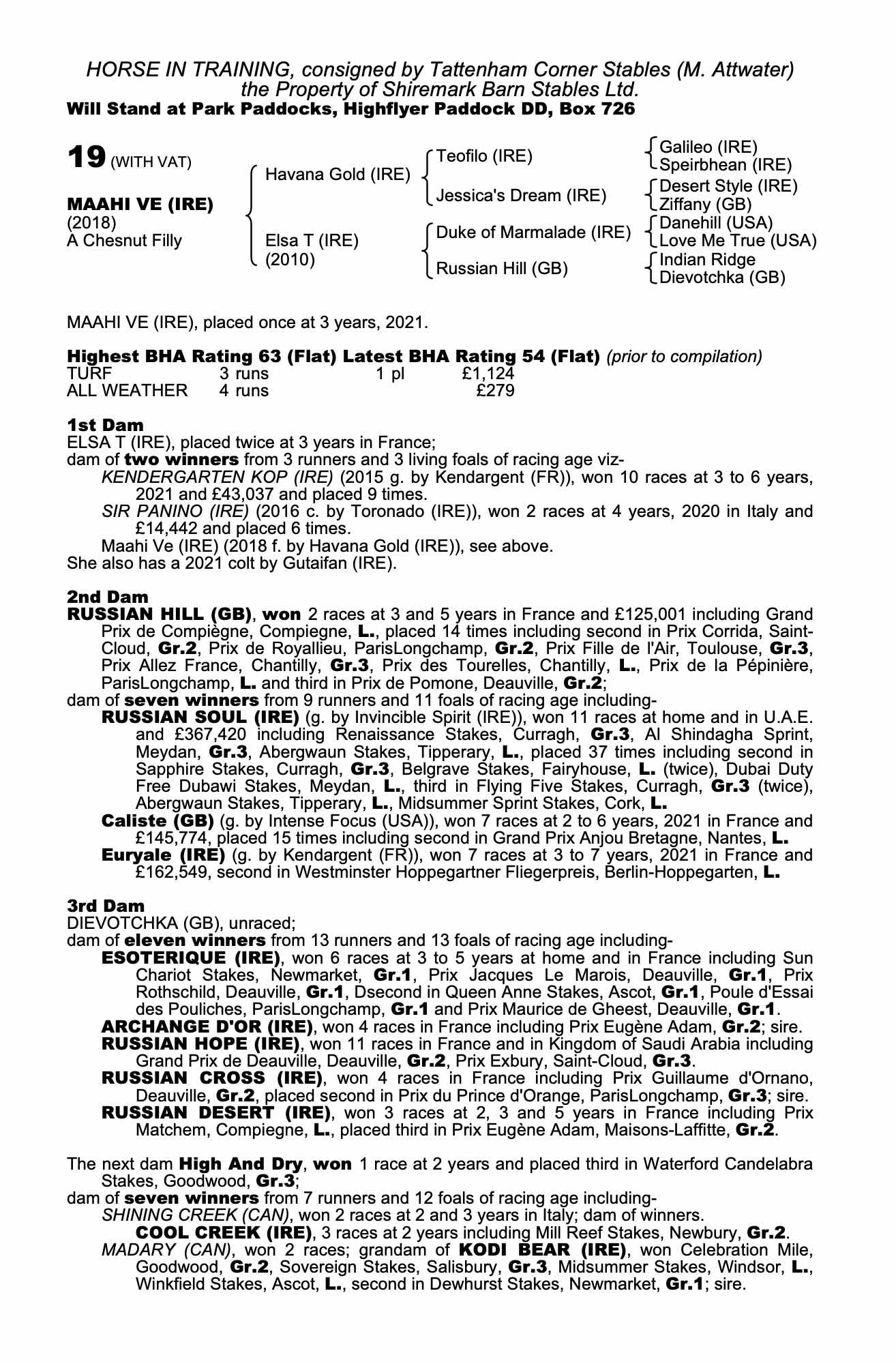 Consignor: Tattenham Corner Stables (M. Attwater)