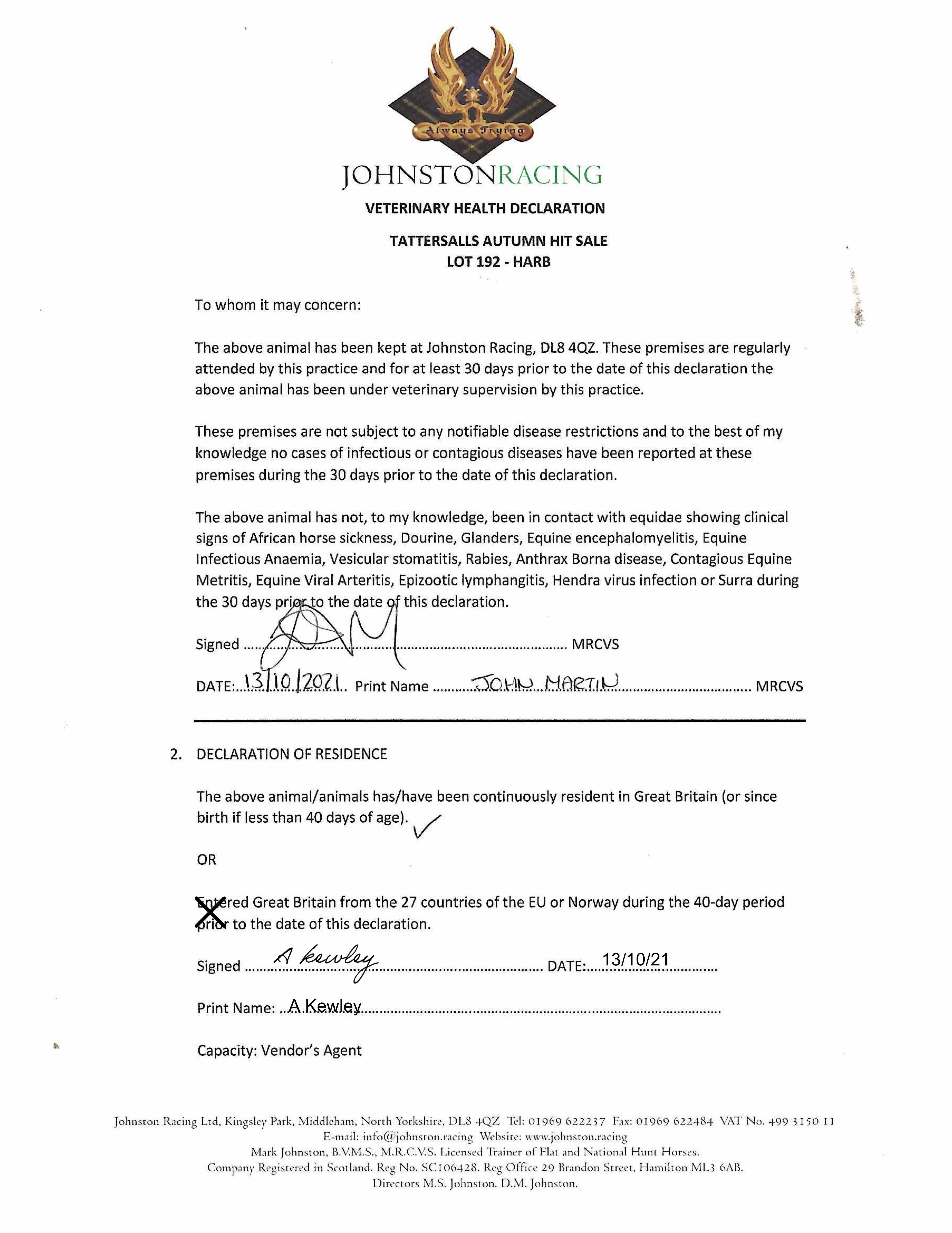 December Mare Sale 2022 lot 2018 Maid For Harry (GB) (F. by Harry Angel (IRE)), Jamie Railton (Agent)=>Vendor 10,000 gns