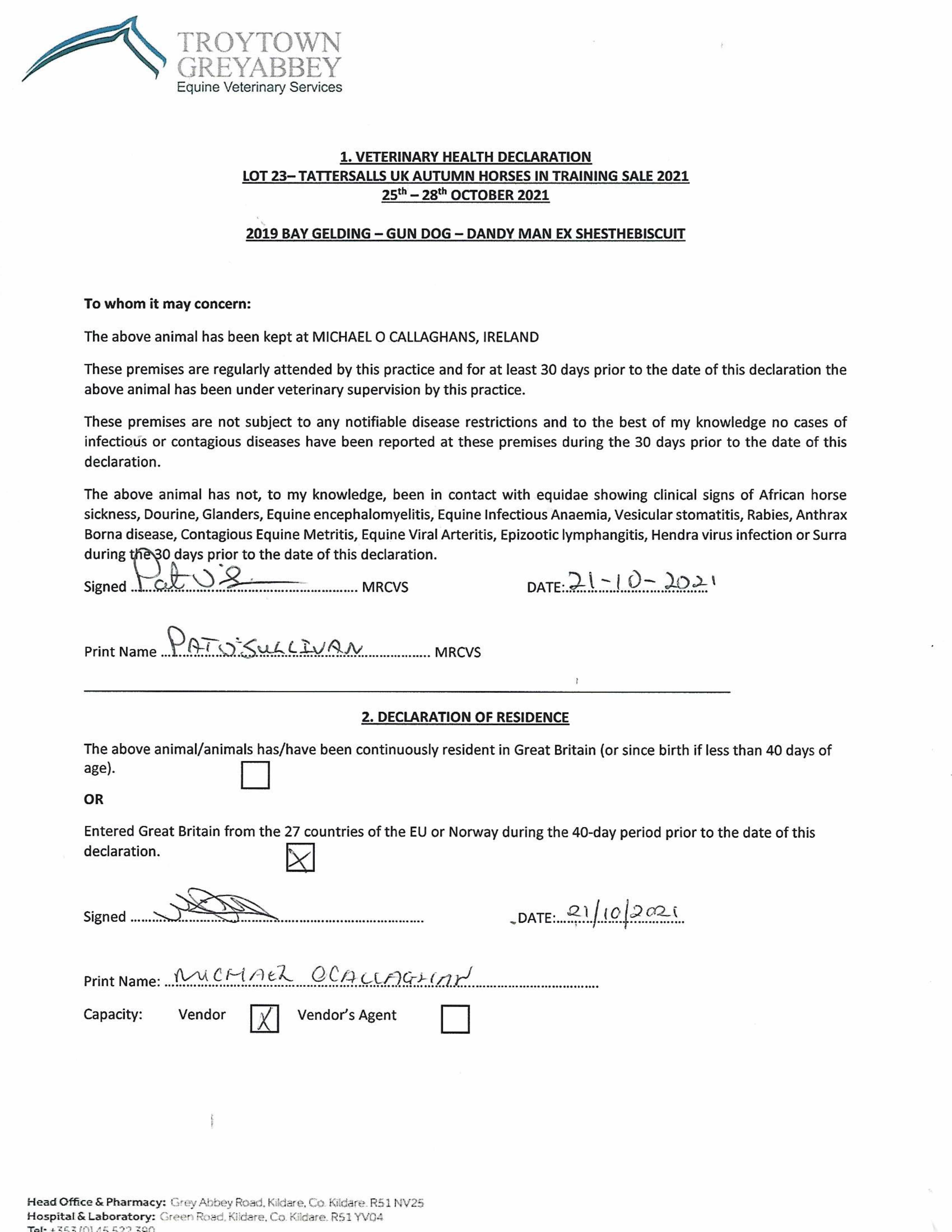 Consignor: M. D. O' Callaghan Racing, Ireland