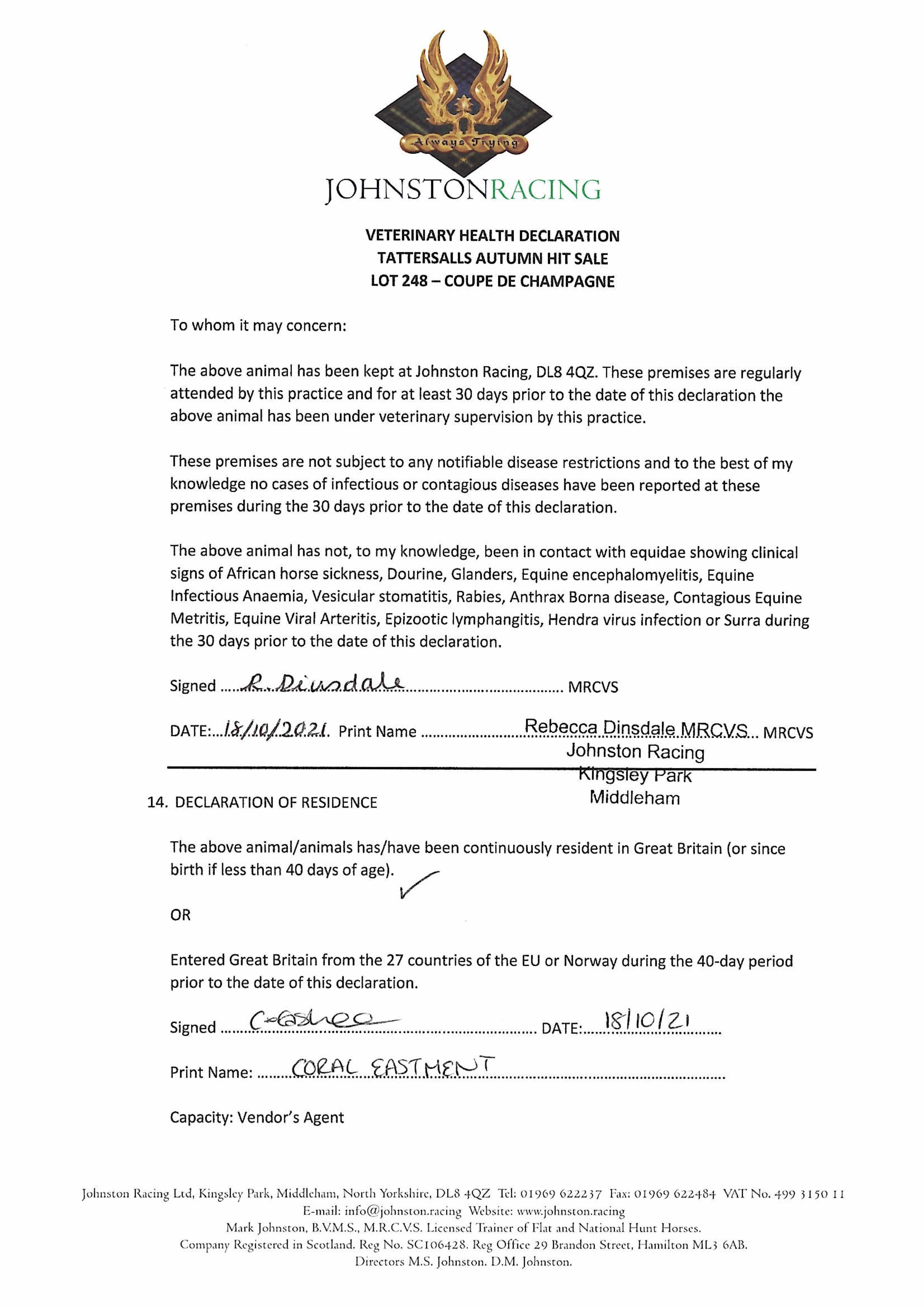 October Yearling Sale, Book 2 2019 lot 846, Stauffenberg Bloodstock=>Johnston Racing 15,000 gns