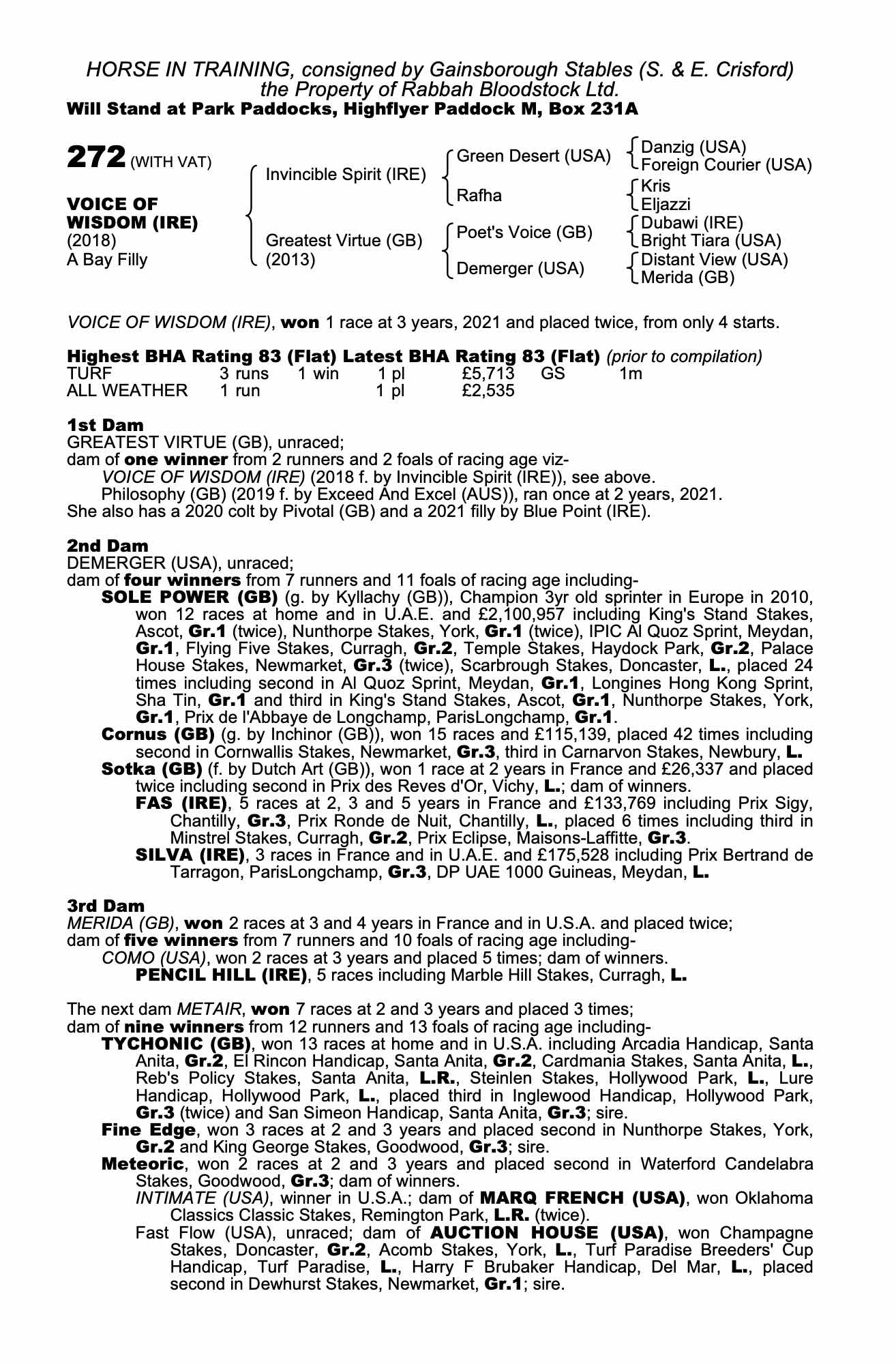 Monday 18 October:  Half-sister Philosophy (GB), placed once at 2 years, 2021.