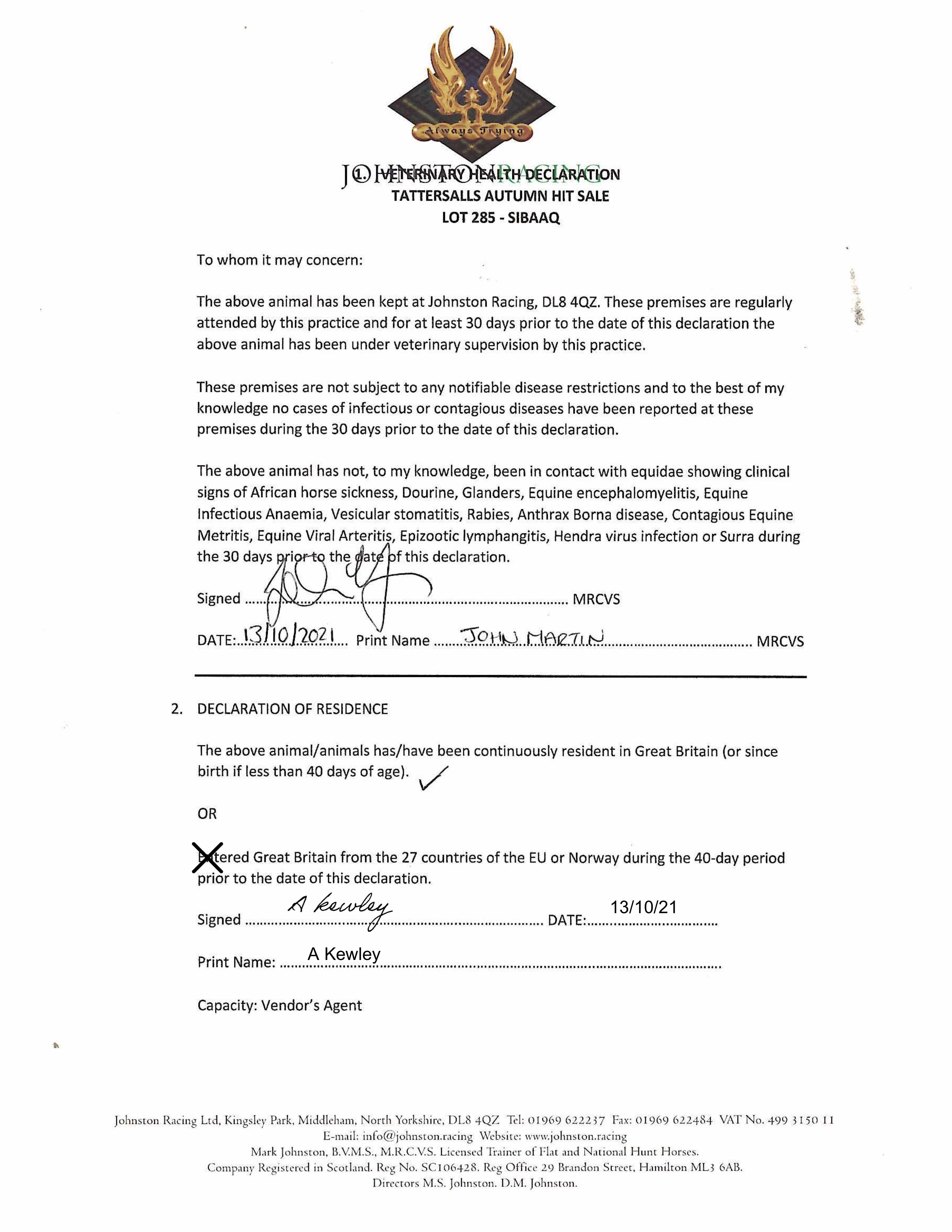 October Yearling Sale, Book 2 2021 lot 719 F. by Roaring Lion (USA) 2020, Barton Stud=>Rob Speers 62,000 gns