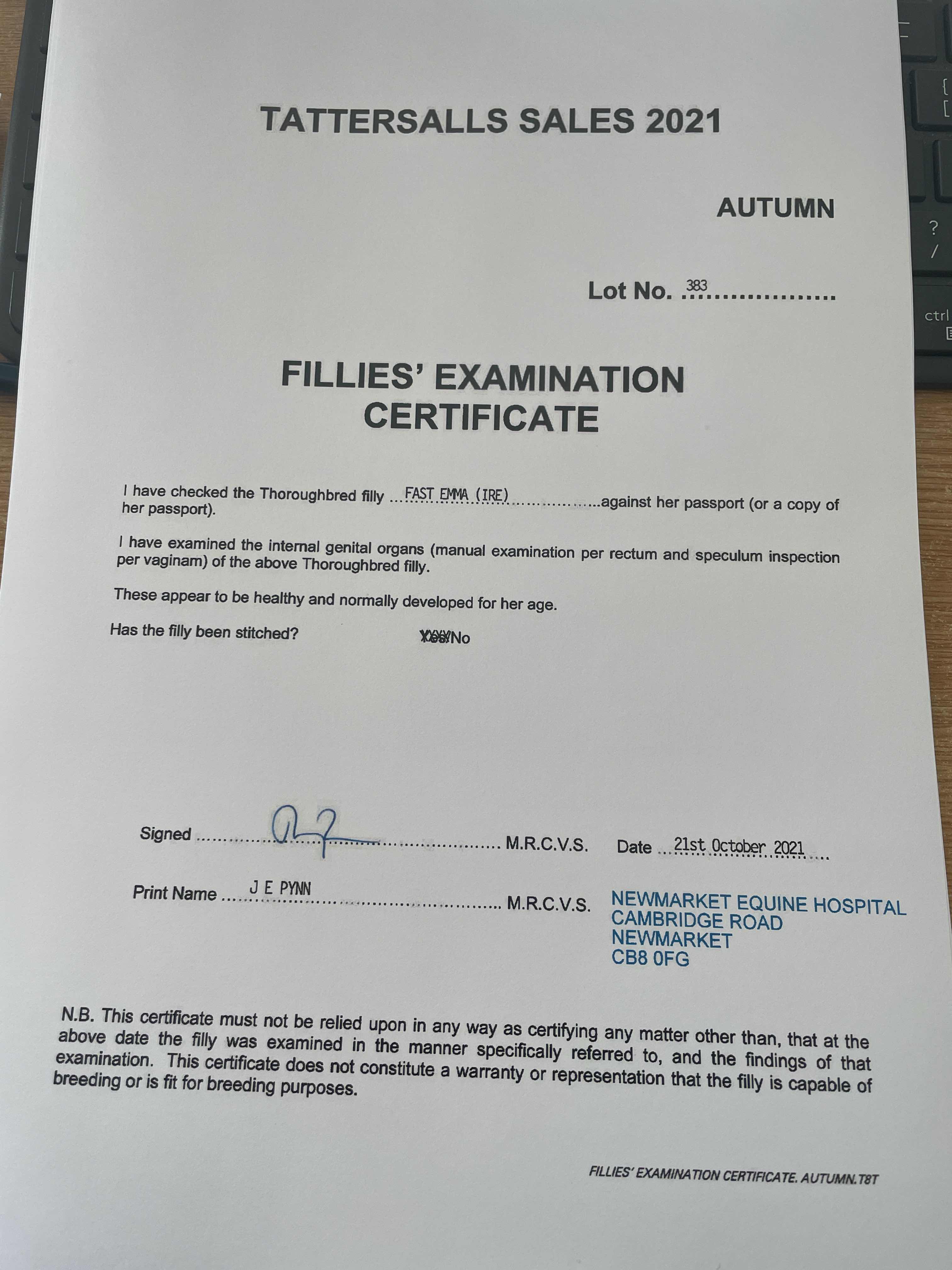 Craven Breeze Up Sale 2015 lot 50 F. by Iffraaj (GB) 2013, Seven Springs Stables, Agent=>Vendor 3,000 gns