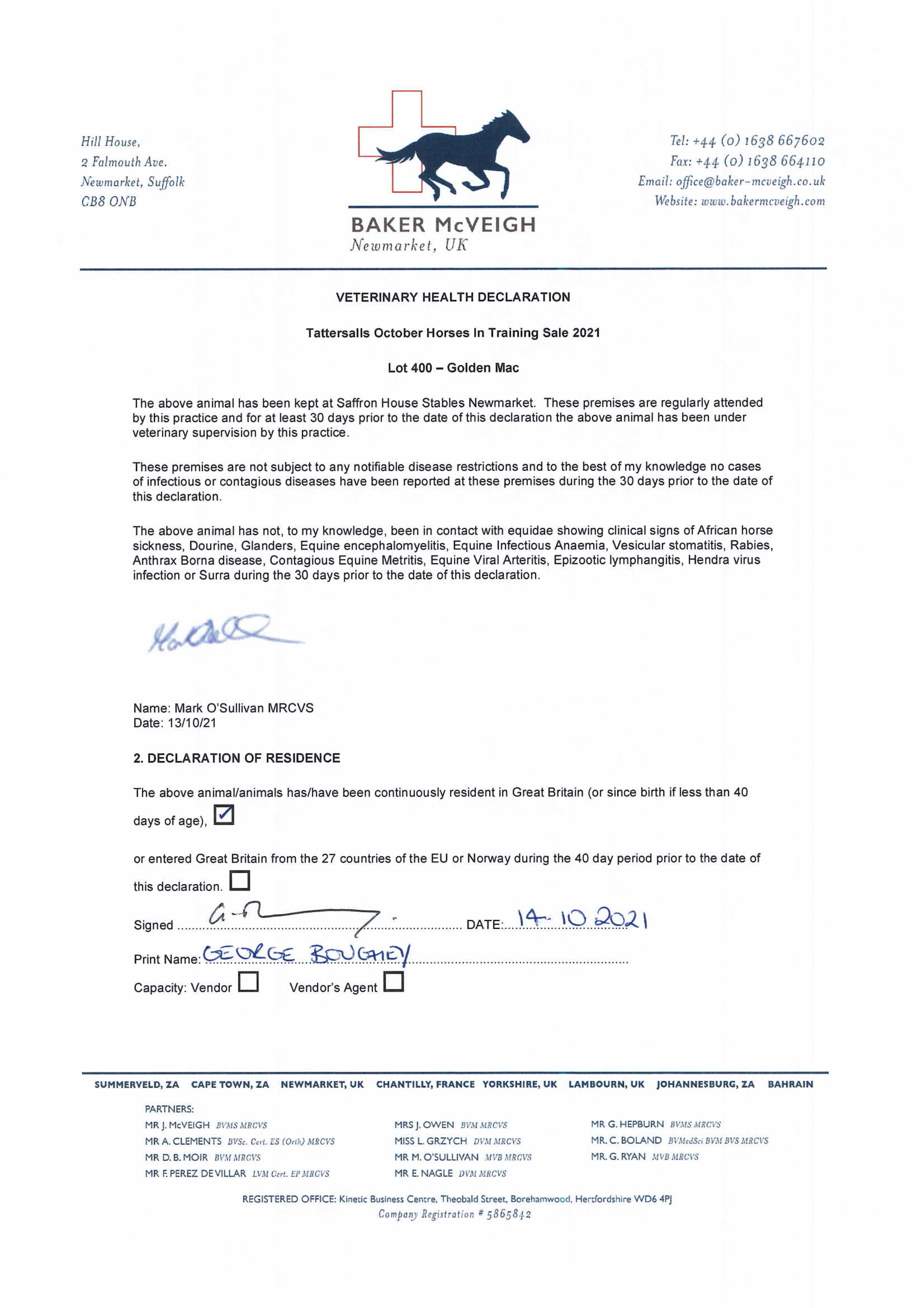 Consignor: Saffron House Stables (G. Boughey)