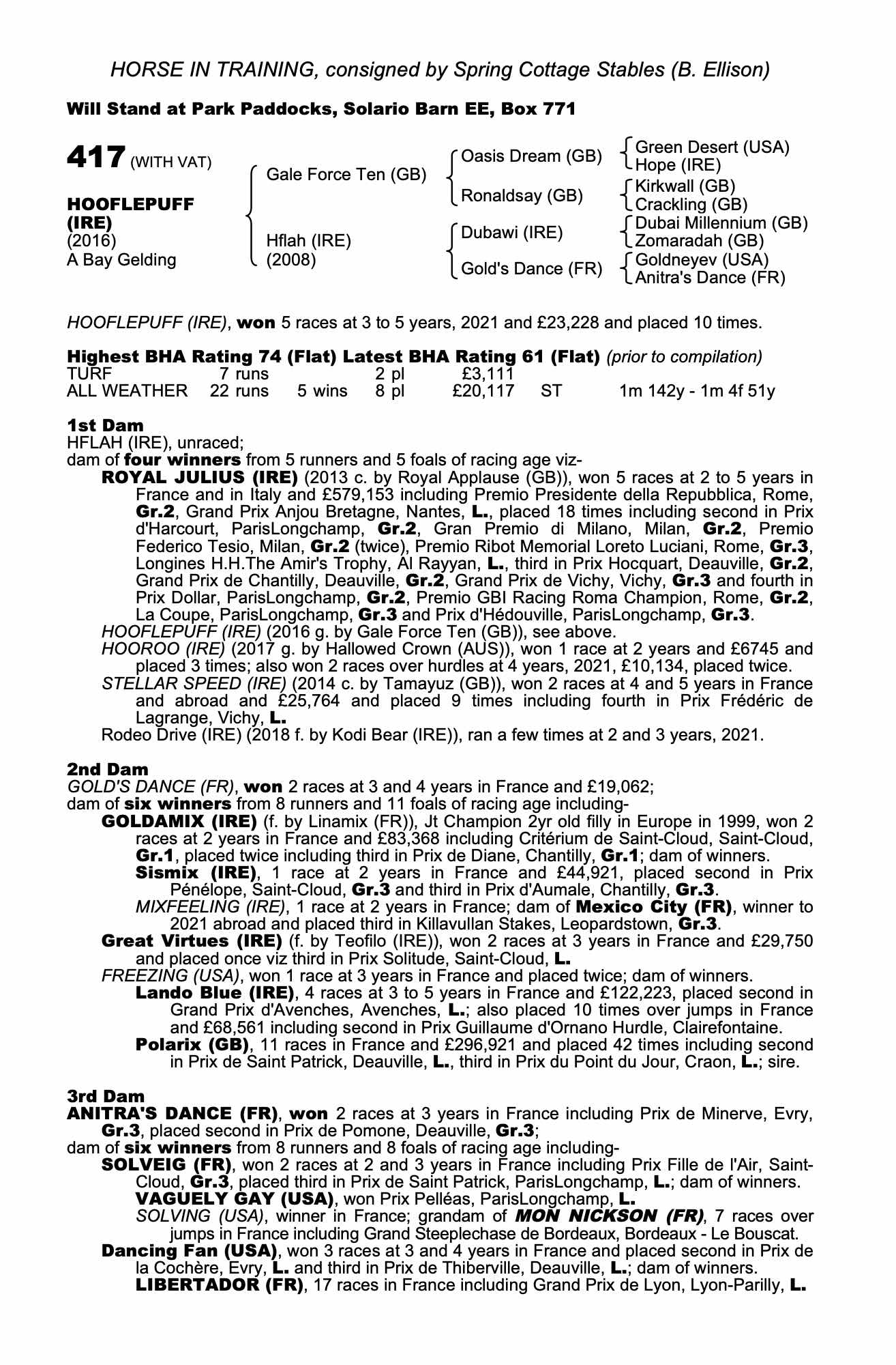 Consignor: Spring Cottage Stables (B. Ellison)