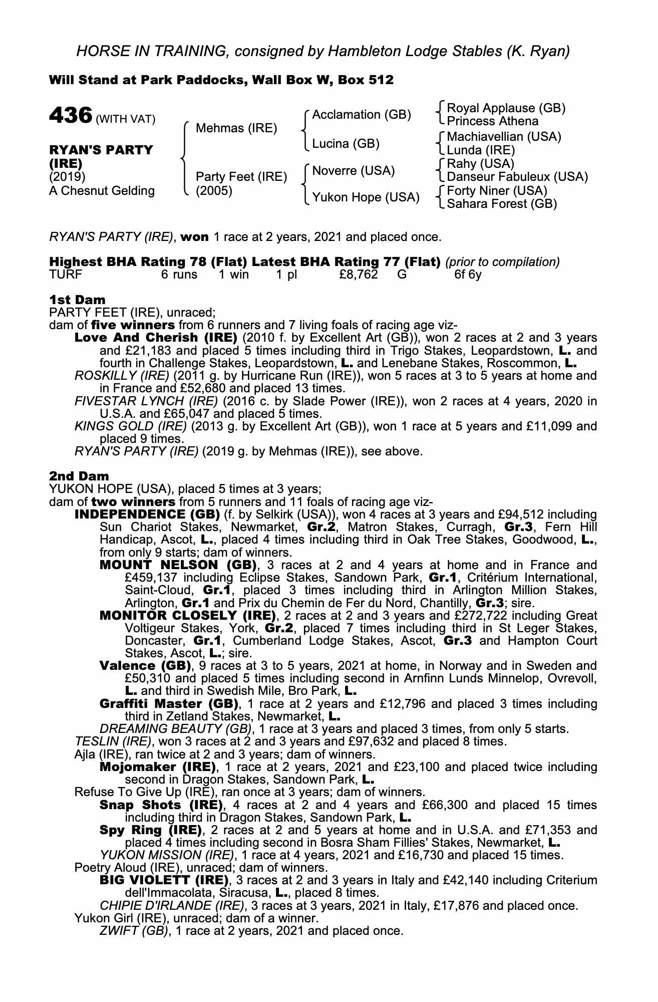 Consignor: Hambleton Lodge Stables (K. Ryan)