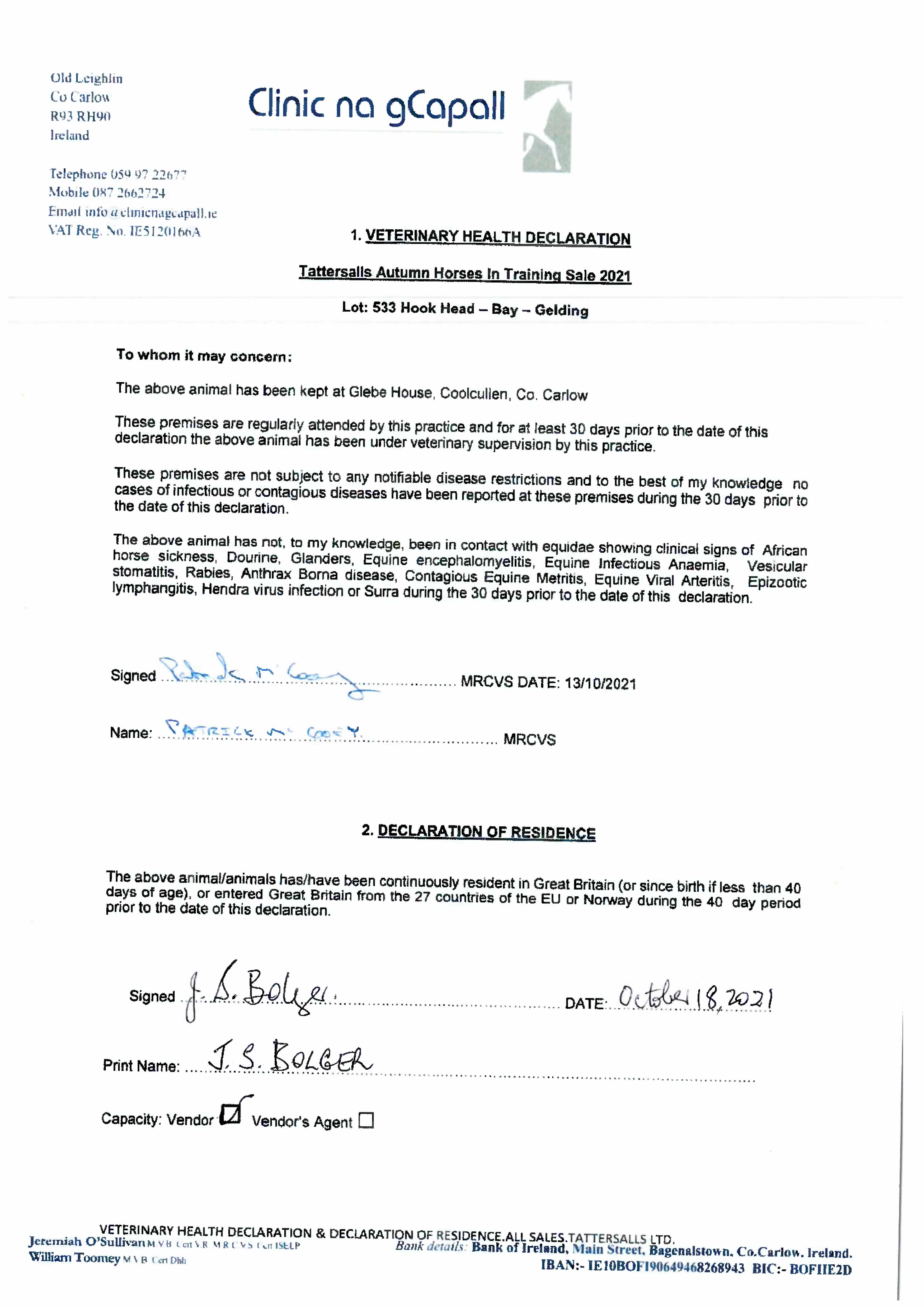 Consignor: Glebe House Stables, Ireland (J. S. Bolger)