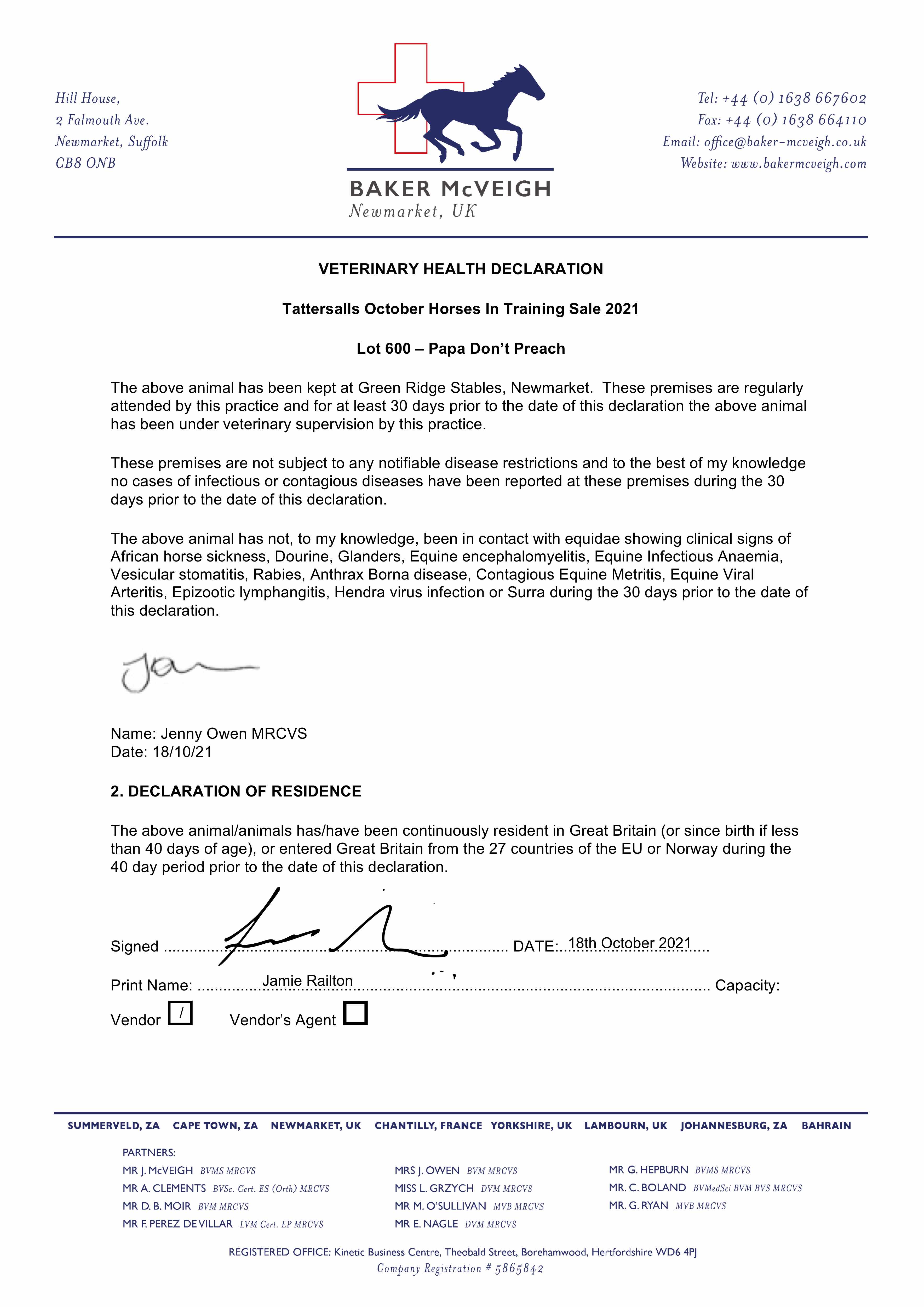Online Sale - 6th June 2024 lot 123, Frost Racing Ltd.=>Vendor 1,000 gns