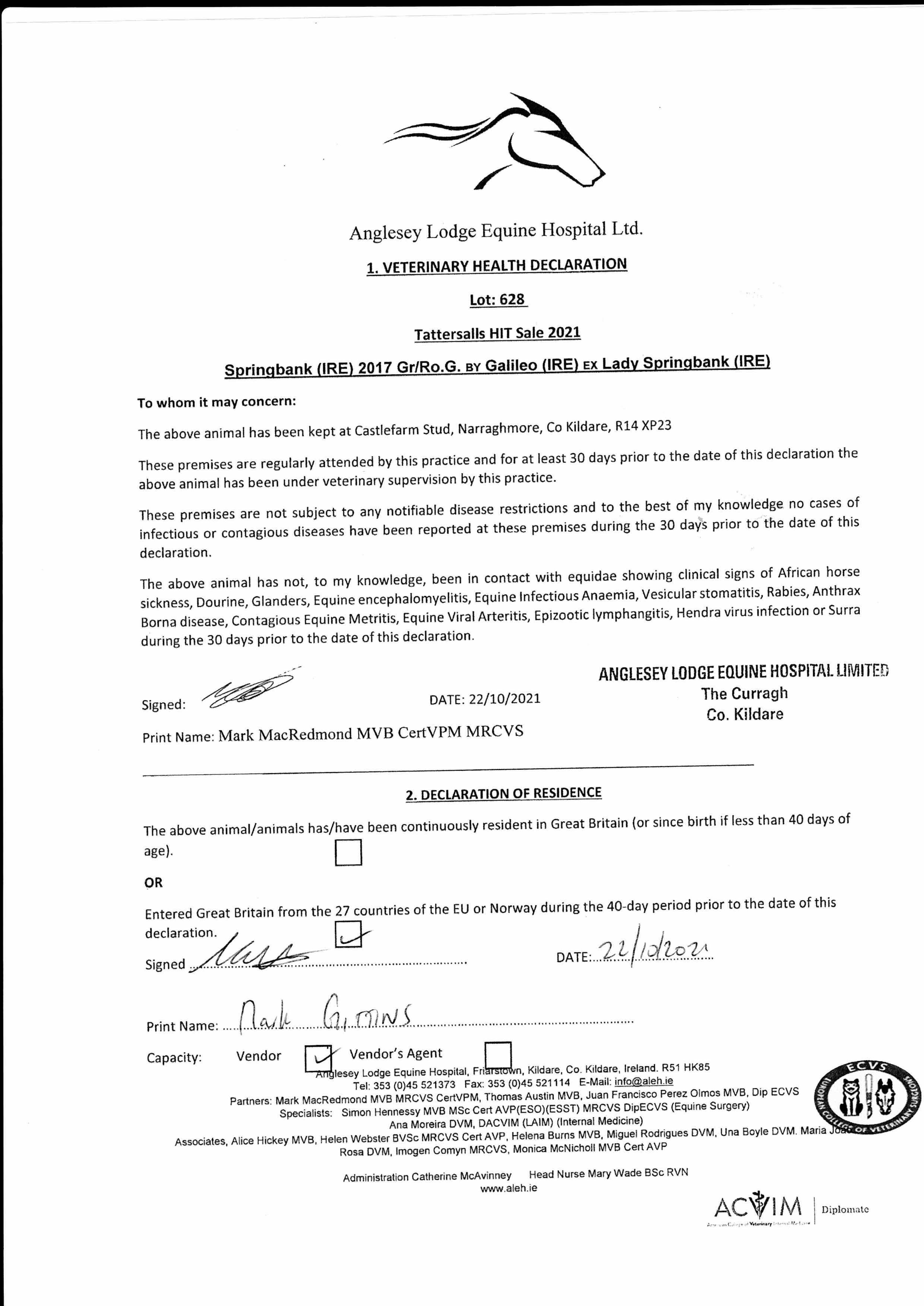 Consignor: Castlefarm Stud, Ireland (Agent)