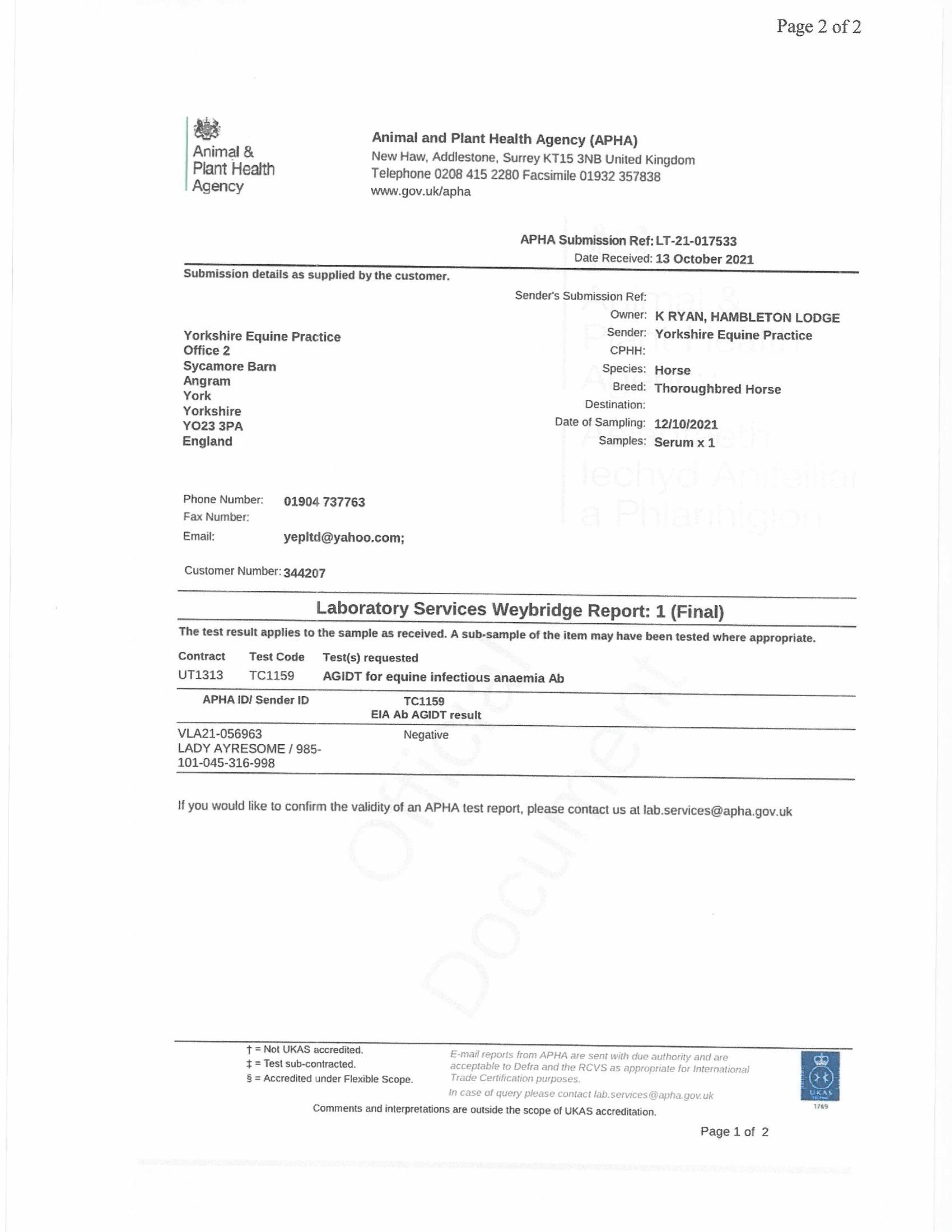 Consignor: Hambleton Lodge Stables (K. Ryan)